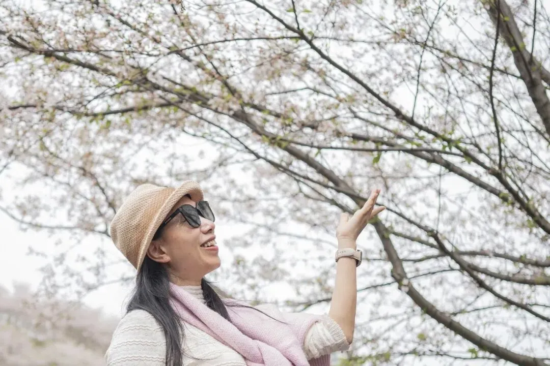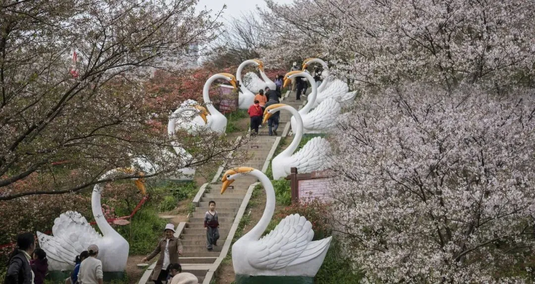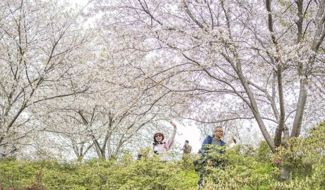 入园时发现,樱花的最佳观赏期已经过去,大部分花朵已然凋谢。尽管如此,前来赏花打卡的游客依然不少。虽无太多选择余地,我们仍义无反顾地沿着山坡向上攀登。好在山顶的花开得还算繁盛,大家纷纷寻找最佳角度,抓拍精彩瞬间。因时间有限,又是集体活动,要有团队意识。为了不影响团队的整体行动,我们不能在此久留,只好匆匆下山。