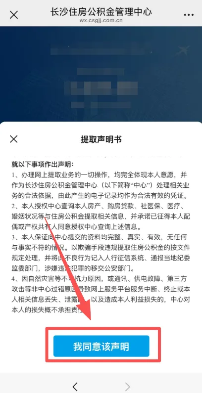 阅读并同意“提取声明书”后进行人脸识别
