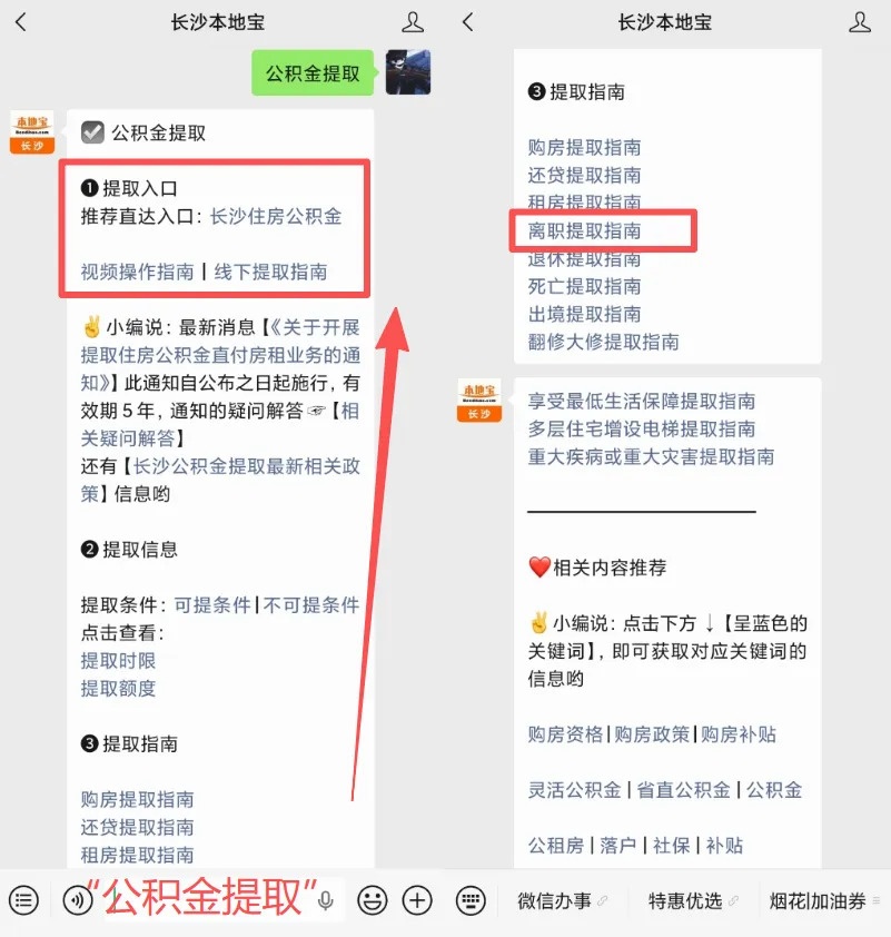 在后台聊天框回复【公积金提取】