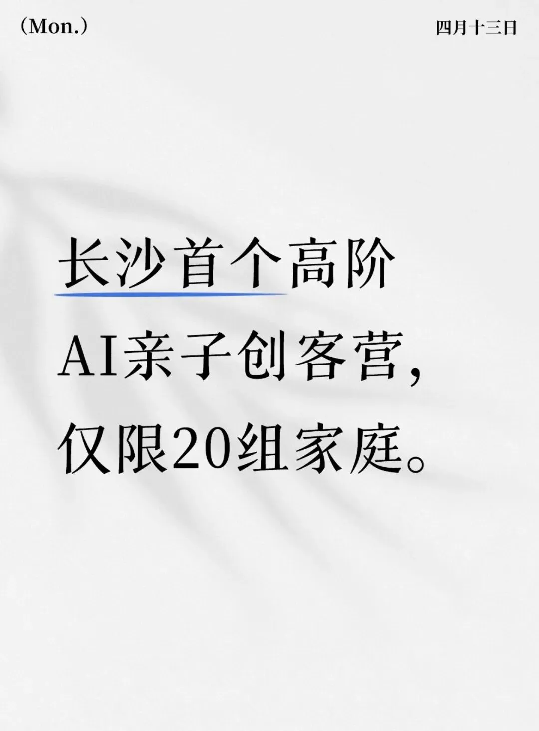 主办:AI长沙唐老师 招募对象:3-6年级亲子家庭(限20组)
