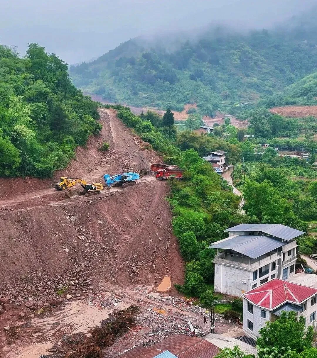 看着这些已经开挖出的路基和整装待发的施工车辆,完全可以想象到,天气放晴后这里机械穿梭、热火朝天的建设场景。