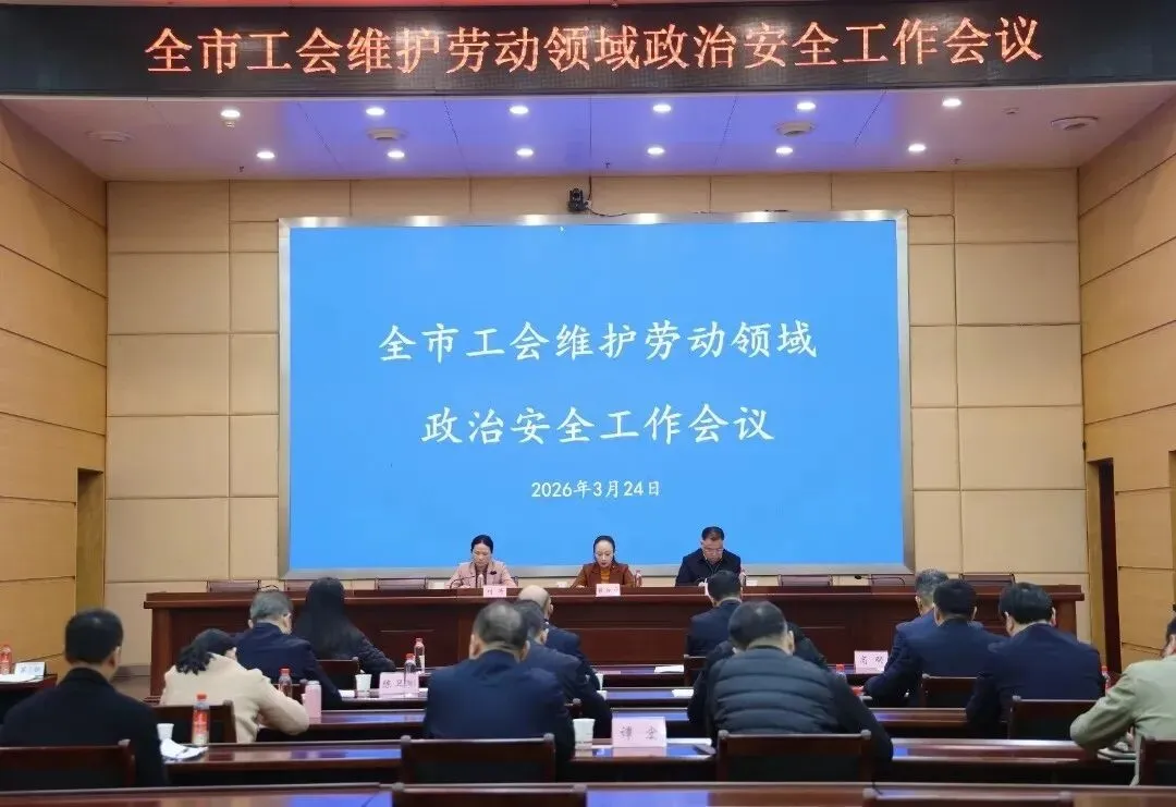3月24日上午,2026年全市工会维护劳动领域政治安全工作会议召开,传达学习2026年全国、全省工会维护劳动领域政治安全工作座谈会精神,安排部署2026年工作任务。市人大常委会副主任、市总工会主席张白云出席并讲话。市总工会党组书记、副主席喻志珊主持会议。(查看新闻详情)