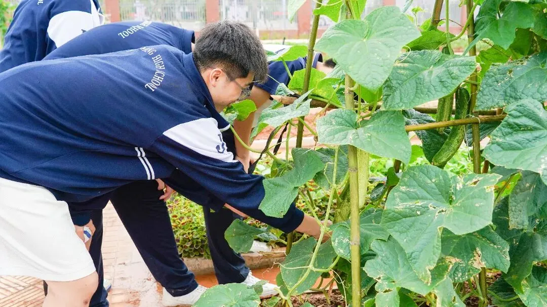 学校精心打造近三十亩的阳光劳动实践基地,划分班级责任地,常态化开展基地种植活动;以“阳光劳动节”为载体,组织校园绿化、家庭劳动作业及社区、田间劳动实践;同时建立了完善的教室、寝室内务打扫与评比制度,让学生们在劳动中体验乐趣,也为心灵提供一方栖息之地。