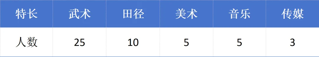 (2)特长生:武术、田径、美术、音乐、传媒