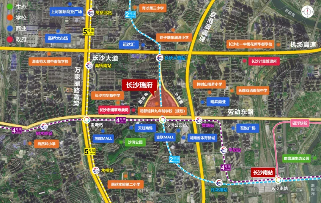 瑞府四期最让人服气的,就是配套几乎没有短板,妥妥的改善盘顶配。交通是真方便,地铁 2、4 号线沙湾公园站就在旁边,步行几分钟就能到,去长沙南站也就两站路,不管日常通勤还是出差,都不用愁堵车。