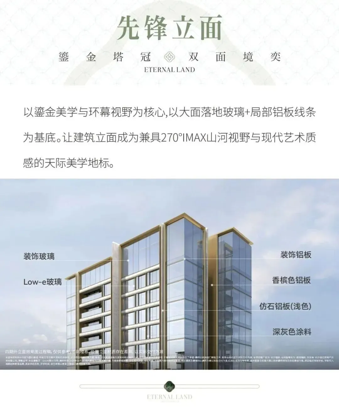 再看产品本身,纯板楼设计,私梯入户,外立面用了铝板 + 玻璃幕墙,颜值在线。