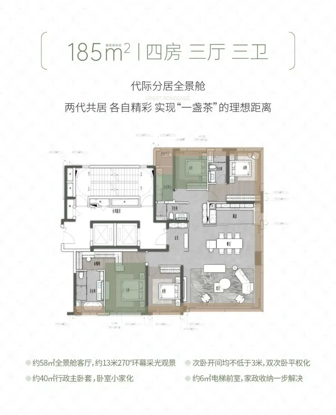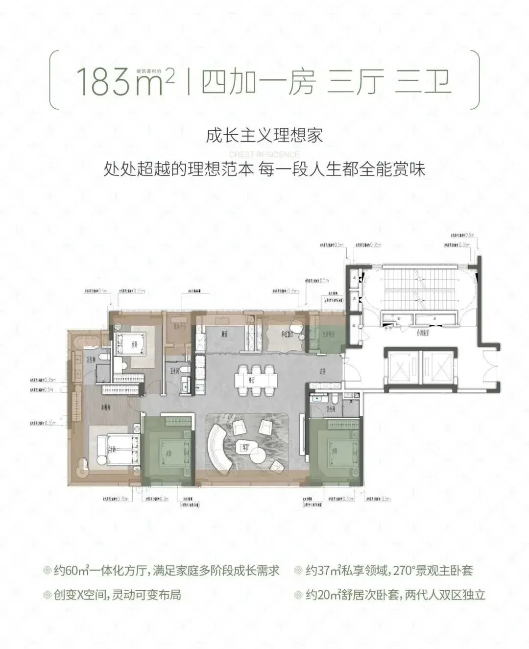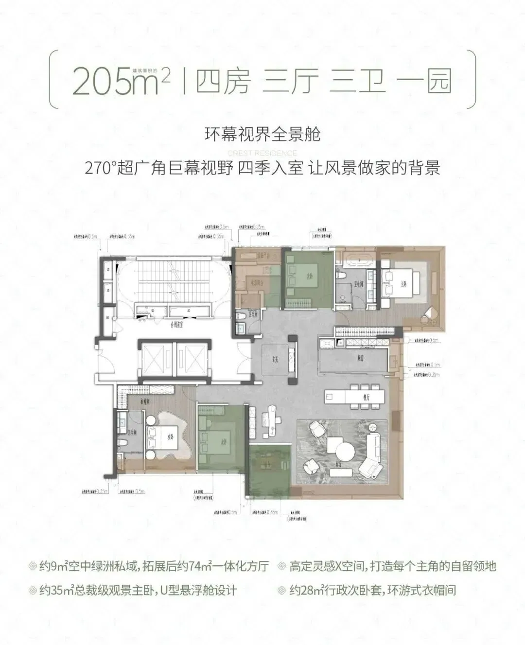 户型从 160㎡到 242㎡,全是大平层,方厅设计、大面宽采光,多孩家庭也能住得宽敞,得房率表现也不错。