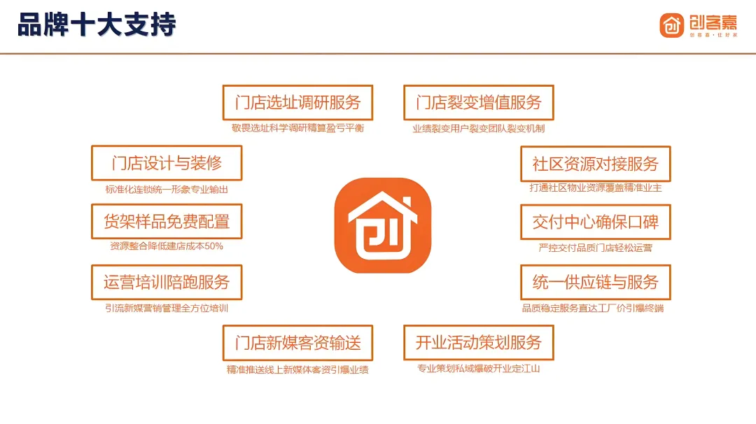 - :仅需数万元启动资金,30-50㎡社区店即可落地,总部全包硬装、上样、店招,所见即所得,10 天即可完成开店筹备。