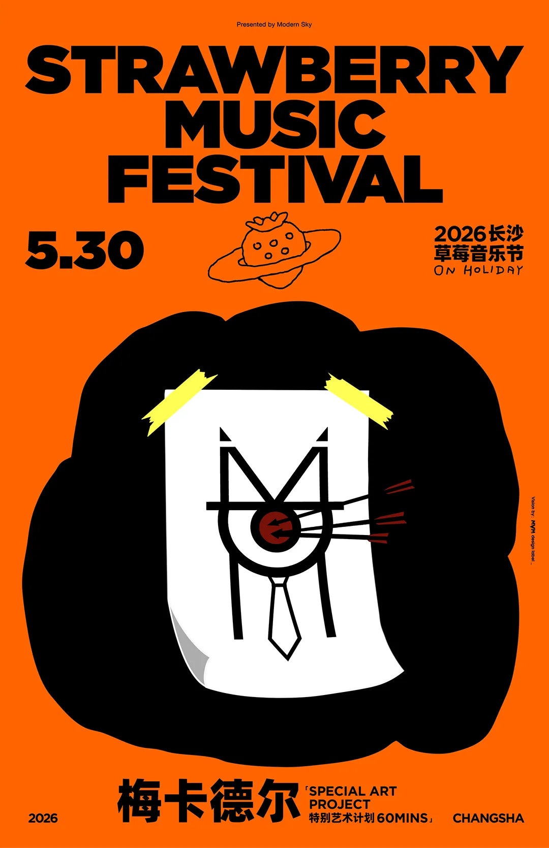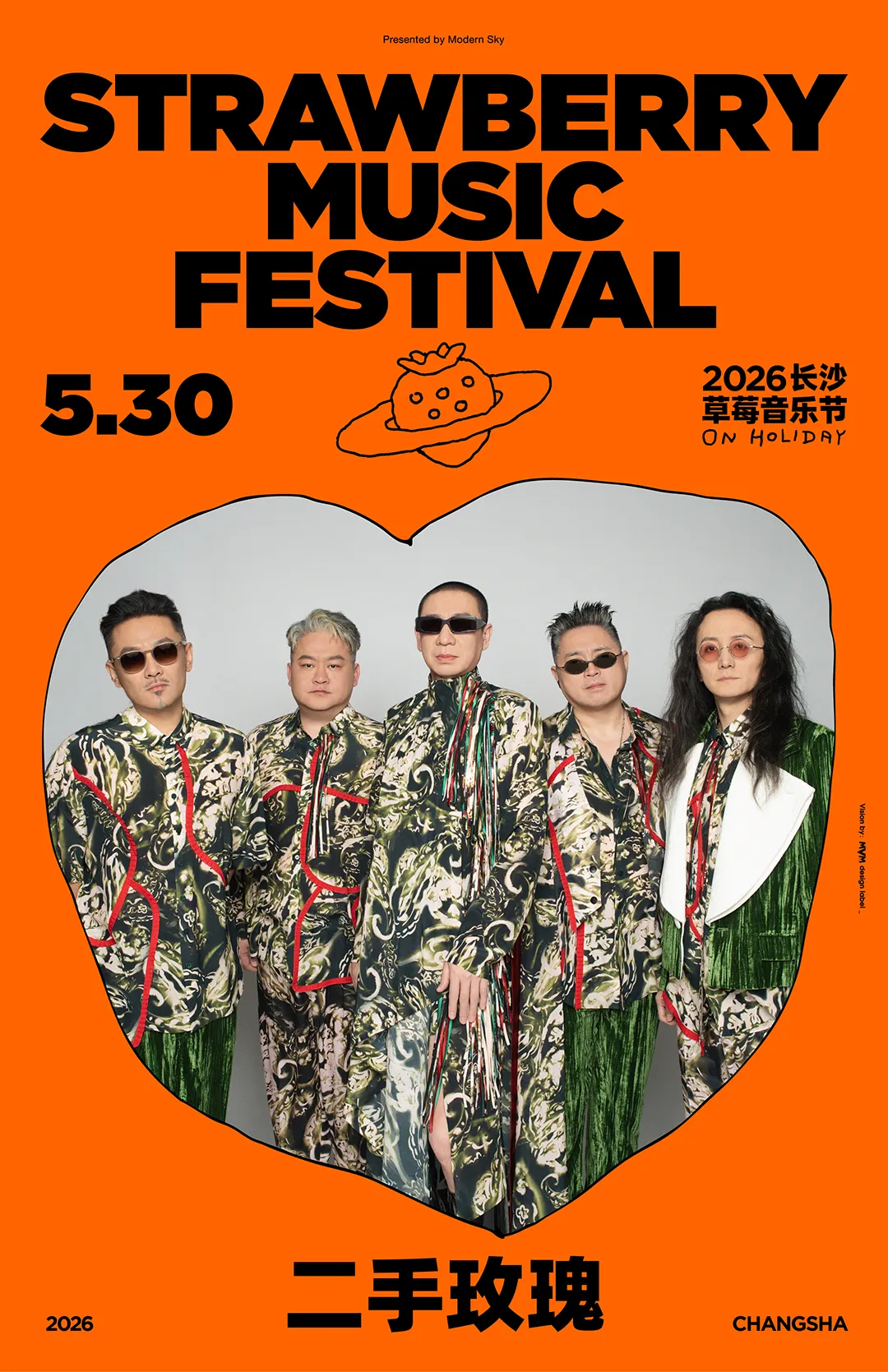 Vision by:MVM design label _2天×23组音乐人,摇滚的热血、民谣的治愈、港乐的情怀、流行的灵动……多元风格交织碰撞,接续两天里每个时段的视听体验。5月30日 周六 内地摇滚黄金阵容集结——万能青年旅店、痛仰、二手玫瑰、五条人齐聚,感染力十足的舞台蓄势待发;梅卡德尔「Special Art Project 特别艺术计划 60mins」初登武汉草莓崭露头角,全新舞美尤以门棋设计的装置艺术作品——八角笼擂台震撼现场,它以强悍的视觉冲击力赢得了口碑并大受乐迷赞誉,同样的戏剧、同样的“景观”,也将抵达长沙草莓舞台;自带东方灵性与电子诗意的唱作组合DOUDOU带着60mins特别企划登陆;声音碎片、阿肆、椿、Matt吕彦良、性格缺失轮番登场,将清新的细腻质感融入第一日的狂热。5月31日 周日 金曲唱作人与港乐新老势力齐聚——陈绮贞、徐佳莹、龚琳娜以细腻唱功将耳机里的金曲带回现场;周柏豪、AGA江海迦、Gigi炎明熹传递港乐魅力,串联经典与新声;夏日入侵企画、后海大鲨鱼、橘子海OrangeOcean注入青春活力;Chace、颜人中、简单对话开启轻快律动。每一个时段都藏着不一样的惊喜,触达情绪流转的瞬间。万能青年旅店,来自河北石家庄的摇滚乐队。出版专辑有《万能青年旅店》《冀西南林路行》。1999年在哈尔滨新华村成立的二手玫瑰,次年即像一支怪手摸进北京,为当时日渐低迷的音乐圈注入警醒与活力。民族摇滚的音乐风格与惊艳妖娆的表演现场,是他们的独一无二标志。时代的洗涤从未停止,二手玫瑰与时代的较量也从未停止,对音乐风格的多元尝试,对舞台表达的艺术追求,都彰显出他们身上特有的艺术价值和卓越魅力。痛仰(MiserableFaith),1999年成立,打破标签,突破自我。一支越来越“不摇滚”的摇滚乐队。五条人乐队由仁科和茂涛创立于2008年,迄今已发行包括《县城记》《一些风景》《广东姑娘》《梦幻丽莎发廊》《故事会》《地球恋曲》等在内的11张专辑。五条人是披着民谣外衣的朋克,也是戴着娱乐面具的艺术家,是一支日渐穿透中国青年亚文化和大众文化的现象级乐队。他们在不同音乐类型之间切换,打破了艺术和生活之间的界限;他们站在离人群最近的地方观察和思考,共情个体生命,沉浸于活生生的生活;他们记录和歌唱的,是一代中国青年从乡土到县城再到国际大都市的悲欢离合,是全球化大时代背景下普通人跌宕起伏的命运史诗。梅卡德尔「Special Art Project 特别艺术计划 60mins」梅卡德尔MERCADER,中国摇滚的年轻刺客。由赵泰创立于广州,前身是赵泰在石家庄的乐队“赵的立方体”,目前出版过四张专辑:《梅卡德尔》(2013)、《自我技术》(2018)、《阿尔戈的荒岛》(2020)、《机器情人》(2024)。梅卡德尔乐队承传了上一个时代中国摇滚乐的精神血脉,道出了一代中国青年在现实困厄下的心声。优美旋律在暗黑工业噪海中神游,灯光和VJ的视觉布道,令梅卡德尔的现场更像一个壮丽的祭坛,而赵泰的唱词,像被一道道闪电撕裂的时代启示录。DOUDOU是由杜冰儿、杜⻜儿组成的唱作组合。沿袭着姐妹心灵相通的创作灵感与共同理念,凭借两人学院派出身的理性与感性融会贯通之音乐表达手法,打造出独一无二的次世代音乐语言,代表了我们这一代的敏感、不安与热爱。