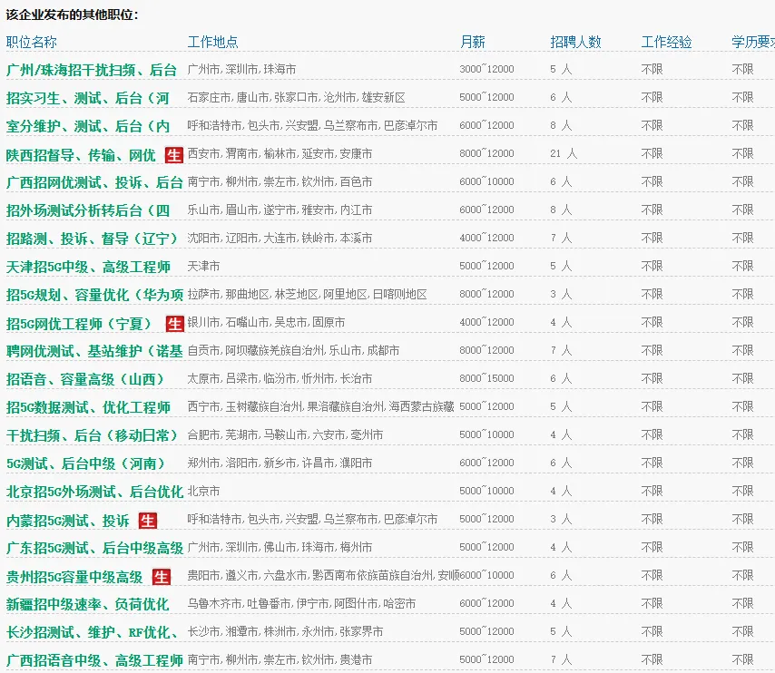 岗位类型: 无线网络优化类(RF),通信规划勘测与设计类,通信工程与运维类,行政/财务/人事/客服类 ,通信销售与市场类