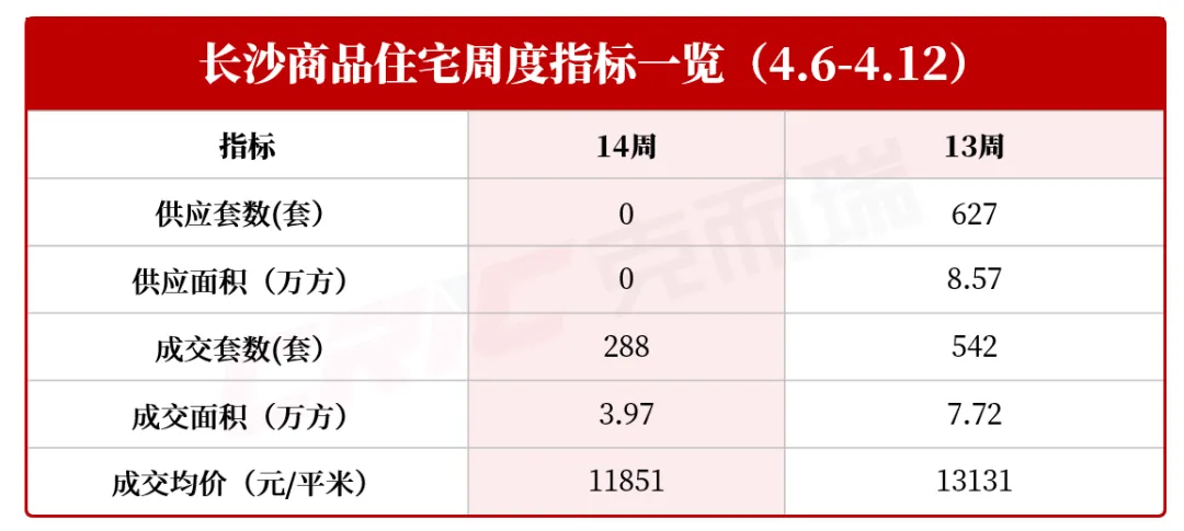 ▶第14周长沙内五区(含托管区域)住宅市场无新房供应,成交3.97万方,市场平稳运行。