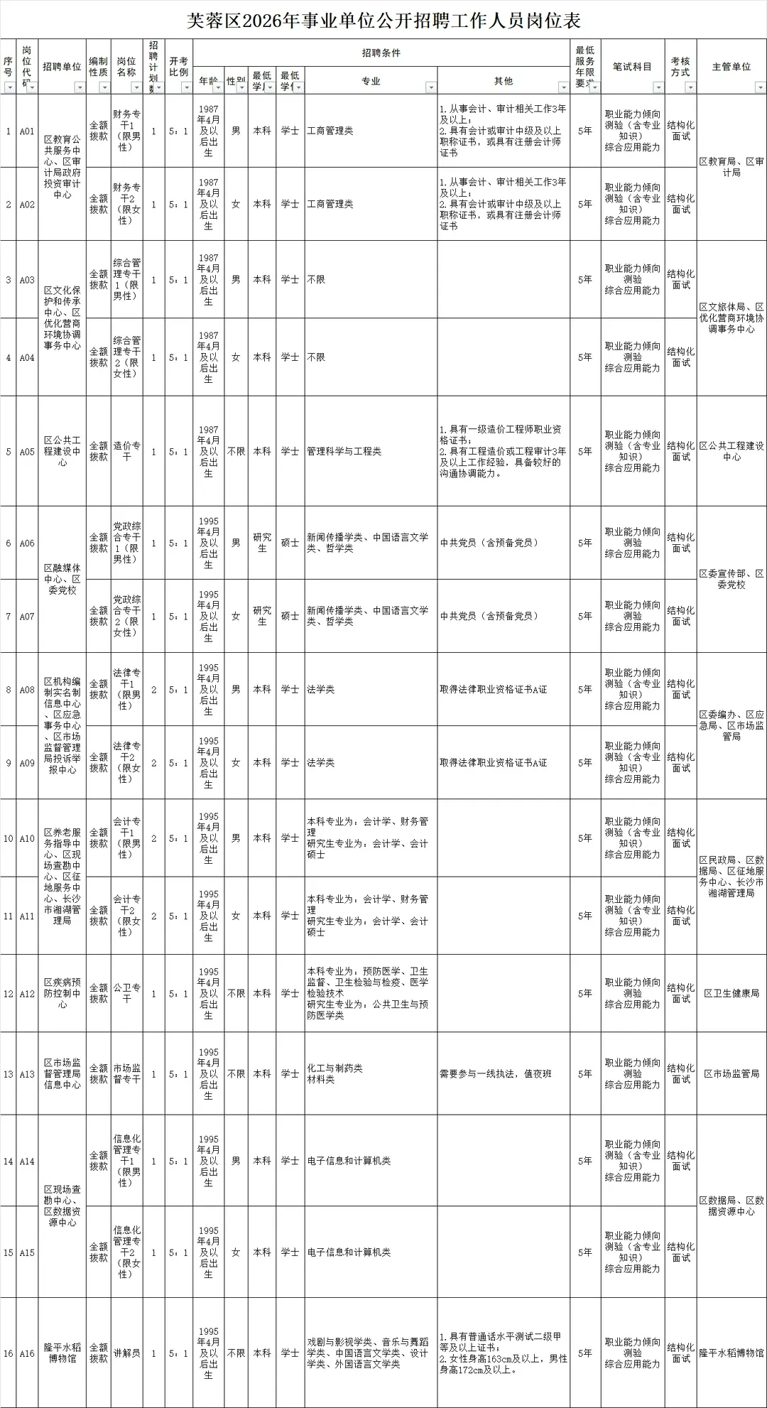 根据《事业单位人事管理条例》(中华人民共和国国务院令第652号)、《湖南省事业单位公开招聘人员办法》(湘人社规〔2025〕1号)等有关规定,结合我区工作需要,经研究,决定面向社会公开招聘事业单位工作人员20名。2026年4月13日-4月17日报考人员进行报名和缴费,4月25日(暂定)举行笔试。现将有关事项公布如下: