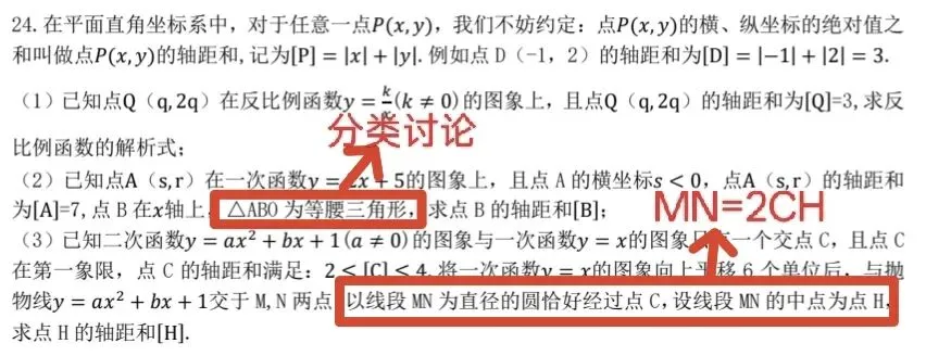 第24题则是二次函数经典的弦长公式的考察,首先注意我们第二问的等腰三角形需要分类讨论且有限制。