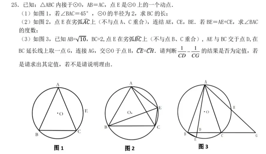 第25题几何压轴则是很经典的等腰三角形外接圆。