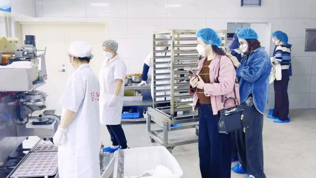 在湖南湘团食品有限公司,考察团实地参观了现代化团子生产线。企业旗下的“团思湘团子”已荣获中部农博会金奖、入选岳阳特色伴手礼,并已入驻多家酒店与景区。其产品在保留传统风味的基础上实现了标准化、规模化生产,与酒店早餐、茶点、伴手礼等场景高度适配。