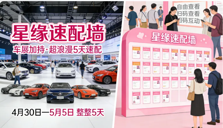 线下5天随时到车展缘分墙查看、扫码;线上社群提前认识、慢慢了解