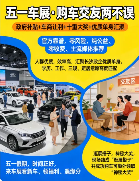 校友推荐!五一车展,长沙政企联合2026大型交友活动!免费脱单!