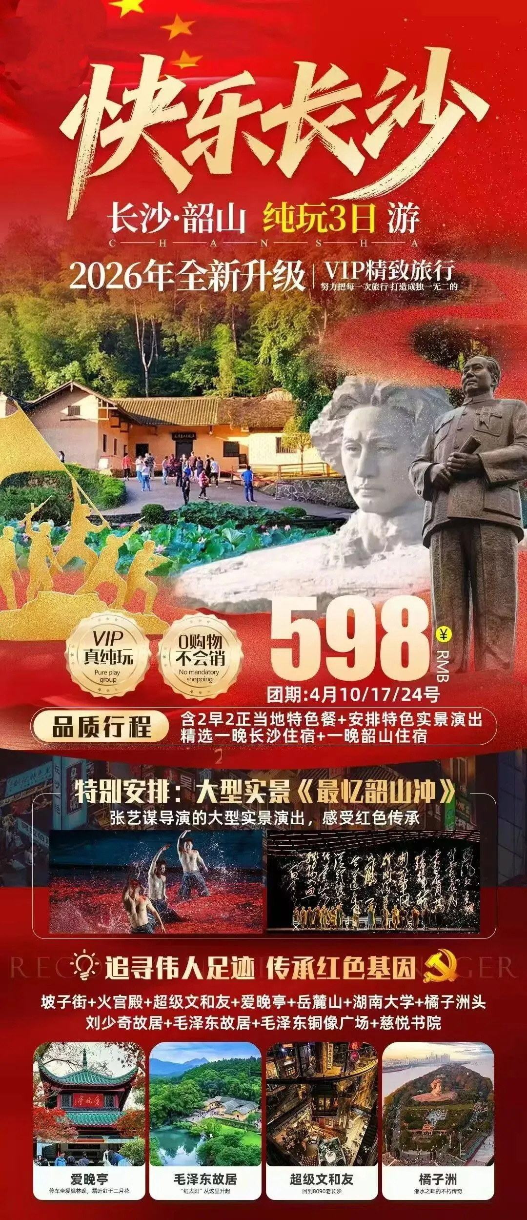 🌈长沙韶山纯玩3日游598元/人(一价全含)