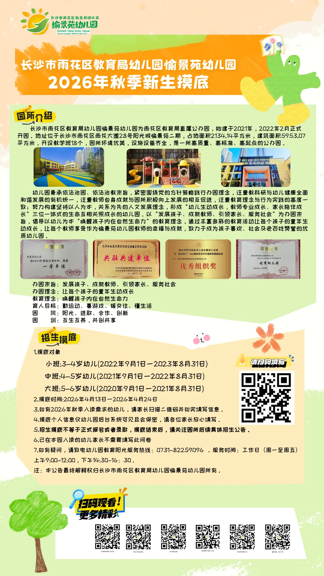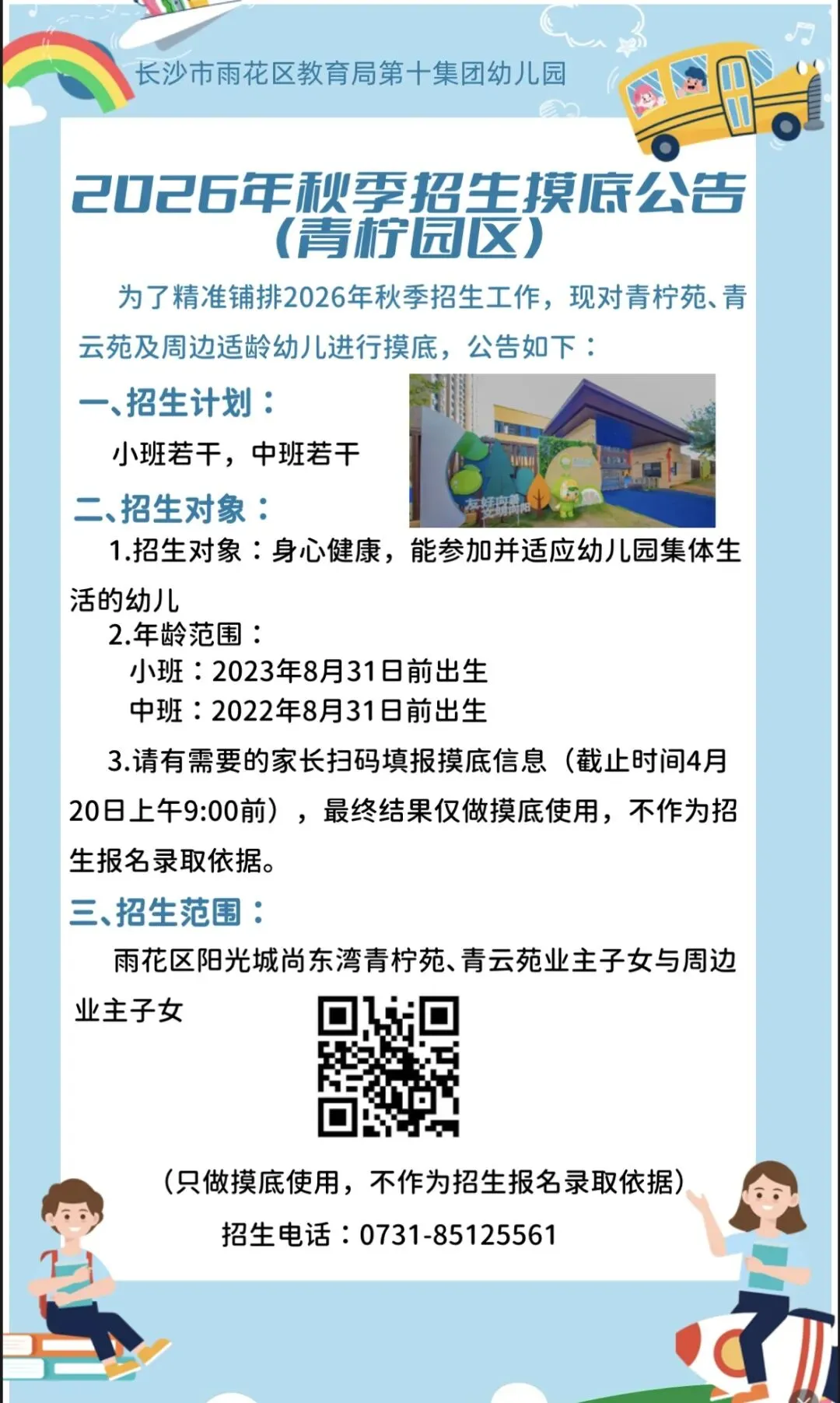 为了解学龄前儿童入学需求,长沙市雨花区教育局蓝莓苑幼儿园现拟对2026年秋季有入园需求的幼儿进行摸底,具体要求告知如下,请有意向入读我园的幼儿家长,真实、准确地填报招生摸底表。