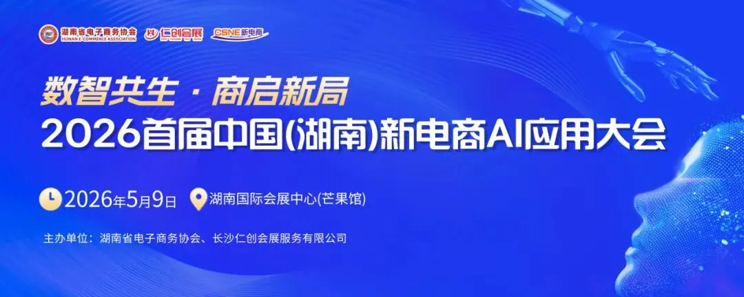 2026 首届中国(湖南)新电商 AI 应用大会:紧跟 AI 技术浪潮,深度解析 AI 在选品、营销、运营、客服等全流程应用,分享私域流量、短视频直播、内容电商等新流量玩法,为礼业数字化转型提供技术与实战支撑。