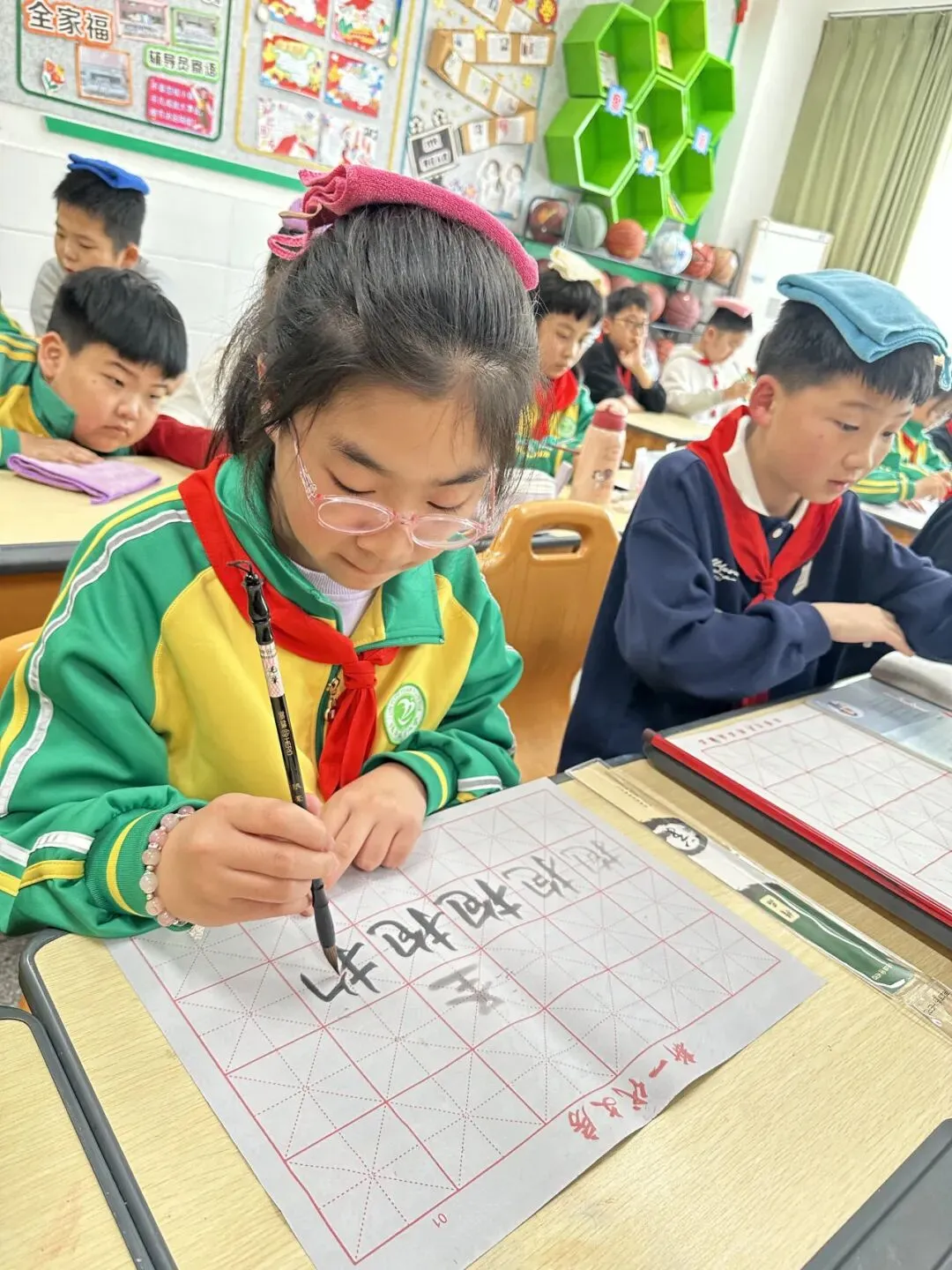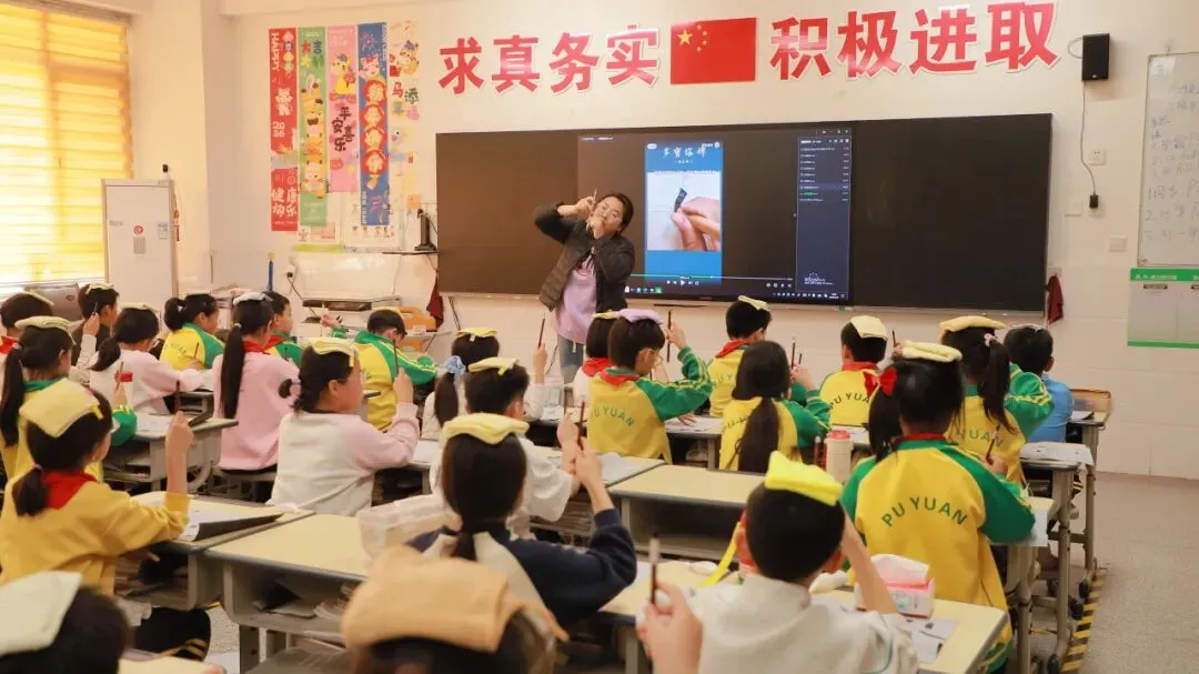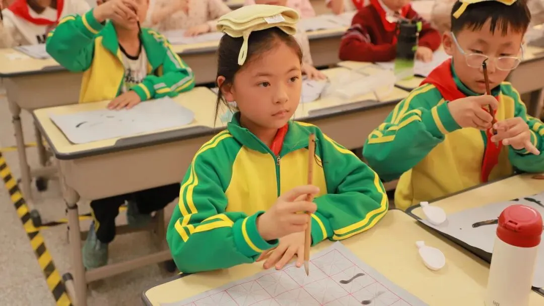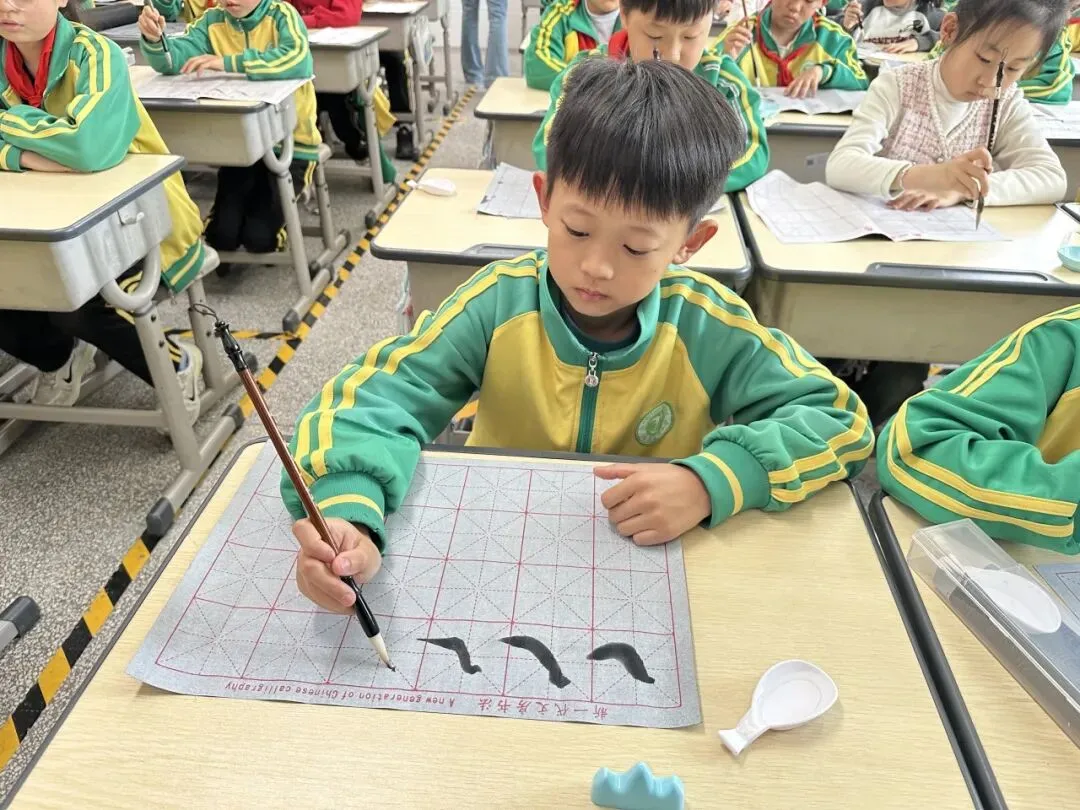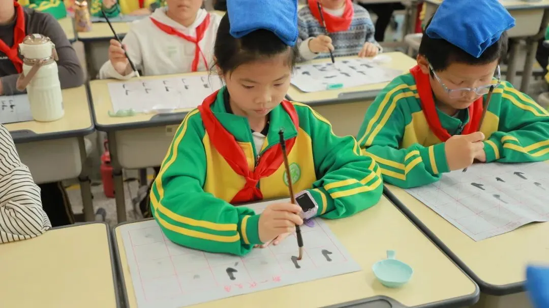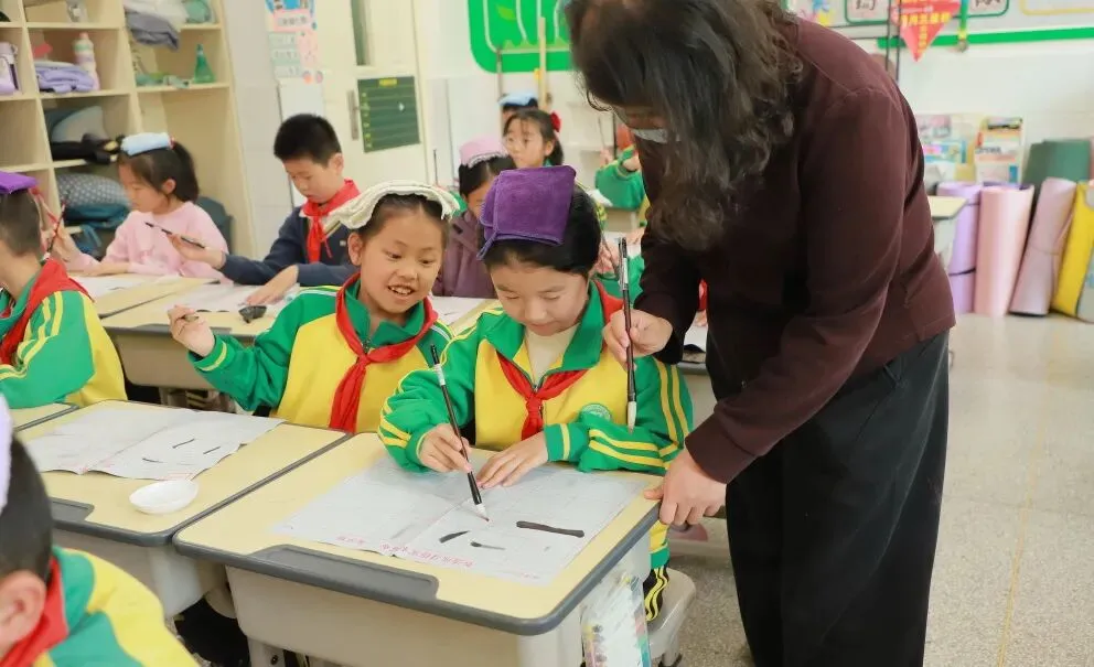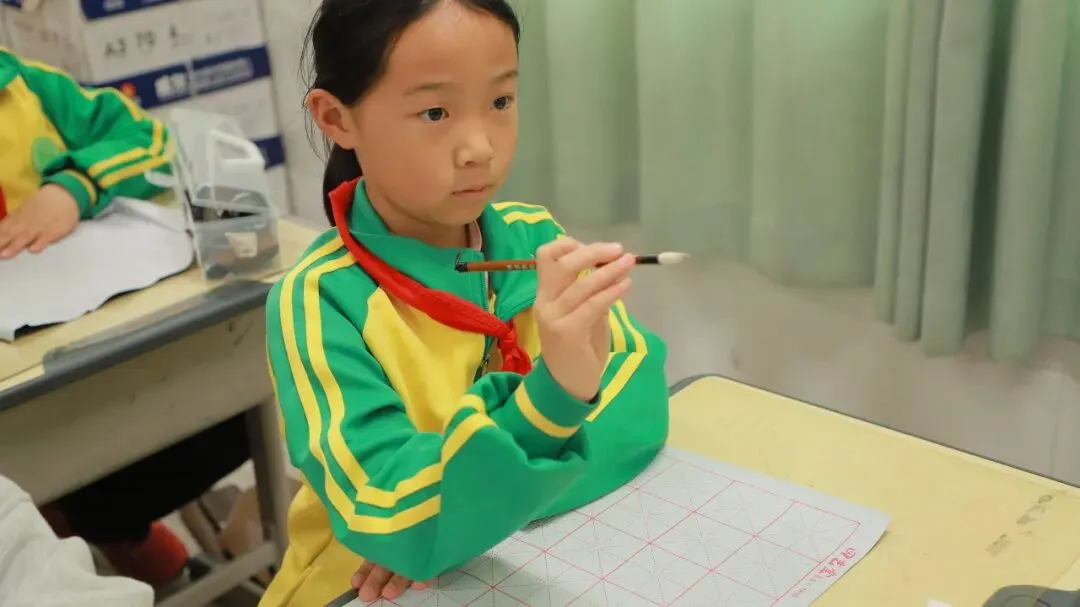 学校用心统筹、有序推进,为书法教育保驾护航——明确各班级每周开设一节毛笔字专项课程,每周五的午间,更专属开辟毛笔字指导时间,悄悄搭建起“课堂细致学+午间慢慢练”的双重练习模式。课堂上,老师们怀揣耐心与热爱,细致讲解握笔姿势、运笔力度,示范起笔的轻盈、行笔的流畅、收笔的沉稳,手把手纠正孩子们的书写小误区,陪着孩子们在笔墨流转中,慢慢发现汉字的线条之美、结构之韵,在潜移默化中提升书写能力。