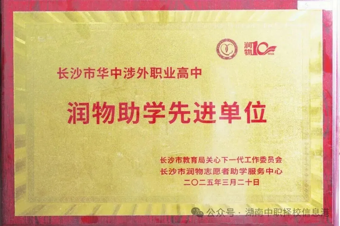 长沙华中涉外职业高中是经湖南省教育厅备案,长沙市教育局批准设立的一所全日制职业高中。学校创办于2005年,历经二十一载春华秋实,硕果累累,文化底蕴积淀深厚。学校坐落于长沙政治、经济、文化三重核心区域、我国中部地区首个国家级新区湘江新区,长沙市委市政府及湘江新区机关均近在咫尺,紧邻长沙高铁西客站、湘江新区综合交通枢纽,交通出行非常便利,地理位置优越。学校地处长沙河西文化教育中心区域,优质教育资源充足,湖南工商大学、长沙医学院等十几所知名高校林立周边,教育文化氛围浓郁。学校教学楼、公寓楼、食堂、田径场、篮球场、羽毛球场、乒乓球场、各专业功能实训室等一应俱全,办学条件非常齐备。学校拥有一支文化底蕴深厚、专业知识扎实、教学技能精湛、爱岗敬业、德艺双馨的教师队伍,为学生实现优质升学或理想就业提供可靠保障。学校高度重视德育特色的打造,三自教育、华中思政优课堂、内务八条线、光盘行动、先锋连等德育特色项目全面铺开,学生思想境界、文明素养、劳动素养不断提升,学校养成教育成果丰硕,成为我校特色发展中一张张闪闪发光的名片。学校教学质量优良,2023、2024年全省公共课普测通过率100%,位列全市第一;近年每年均有数百名优秀学子考入湖南工商大学、湖南工业大学、湖南财政经济学院、湖南科技学院、长沙民政学院等优质本科、专科院校就读,高考升学率高居同类学校前列,学生优质升学成为我校特色发展中最大的特色。