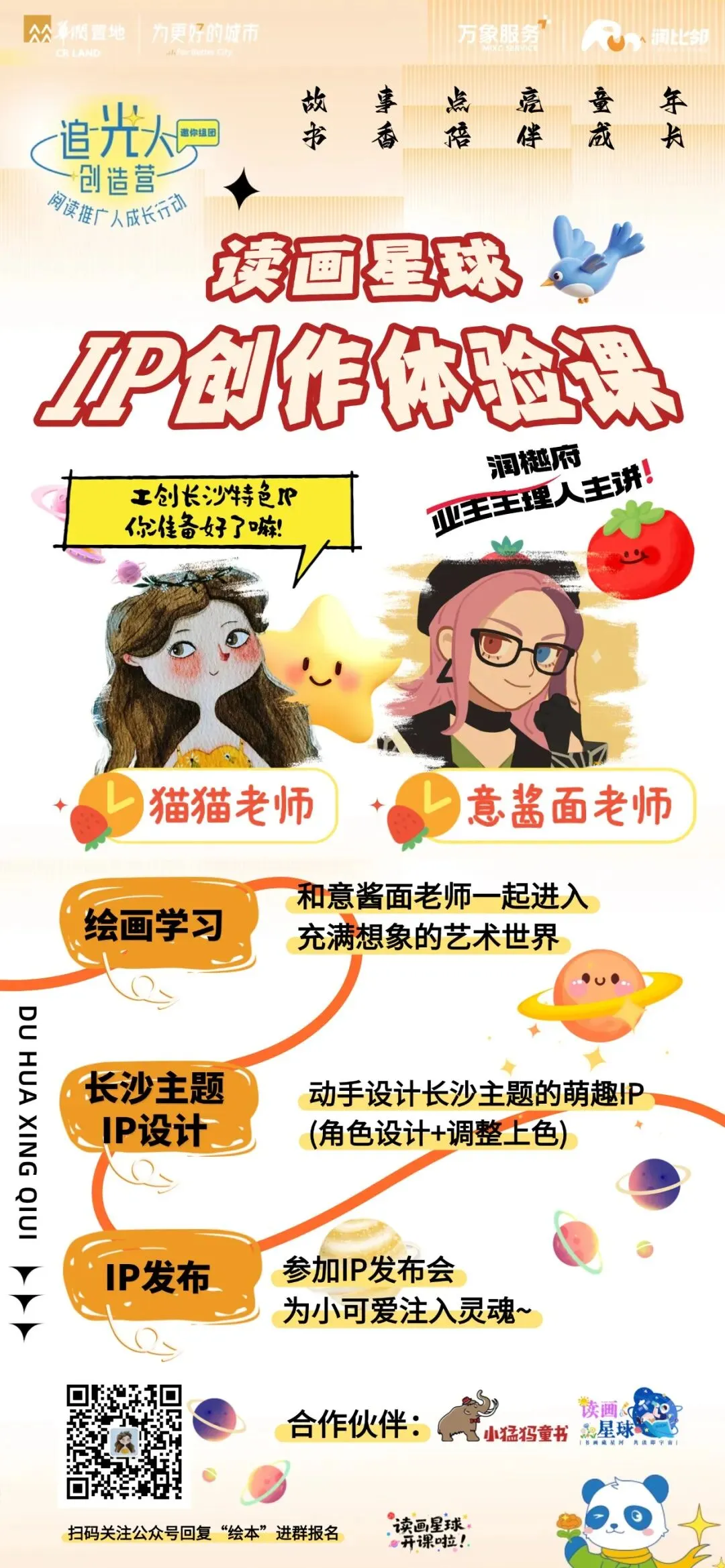 亲爱的大朋友,小朋友们,读画星球活动全新升级咯,快来一起看看吧~5-12岁混龄创作|不教技法,鼓励孩子把最萌趣的想法画出来!湖北民族大学艺术专业|帧元文化传媒创始人|前湖南广电风芒品牌成员擅长插画、手绘、摄影,电视后期与IP影视化经验丰富读画星球主理人|小红书千粉博主|爱阅湖南区阅读推广人3岁男孩妈妈,插画师,自然养育与游戏化育儿实践者👶 给孩子:👉 用画笔把长沙变魔法!臭豆腐、岳麓山、橘子洲…变身可爱小精灵!👉 专业老师引导,零基础也能画出创意作品!👉 带走独一无二的【长沙IP画作】!👫 给家长:👉 放下手机,和孩子一起脑洞大开!👉 无压力陪伴,享受3小时艺术共创时光!👉 记录专属亲子回忆!⏰ 时间:4月18日(周六)9:30-12:00📍 地点:润樾府16栋悦享书吧本场为内部实践场,名额有限。关注公众号【读画星球】,后台回复“小怪物”获取报名方式。