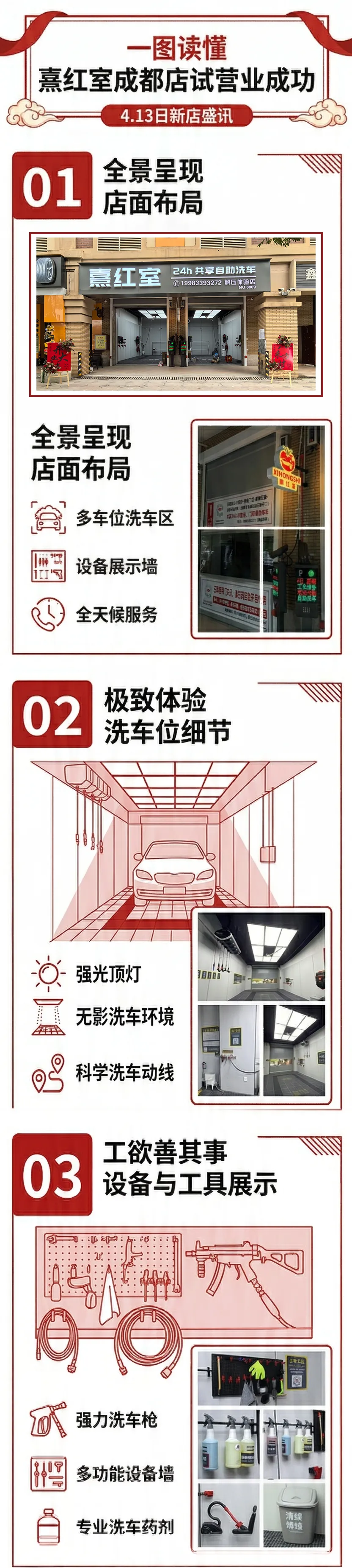 为了让大家洗得舒心,我们死磕硬核细节:告别昏暗的无影强光顶棚、科学的洗车动线、以及满配且强力的洗护工具墙。我们不仅是在提供一个24小时自助洗车的场地,更是在为您打造一个可以短暂放空、洗去疲惫的独处空间。