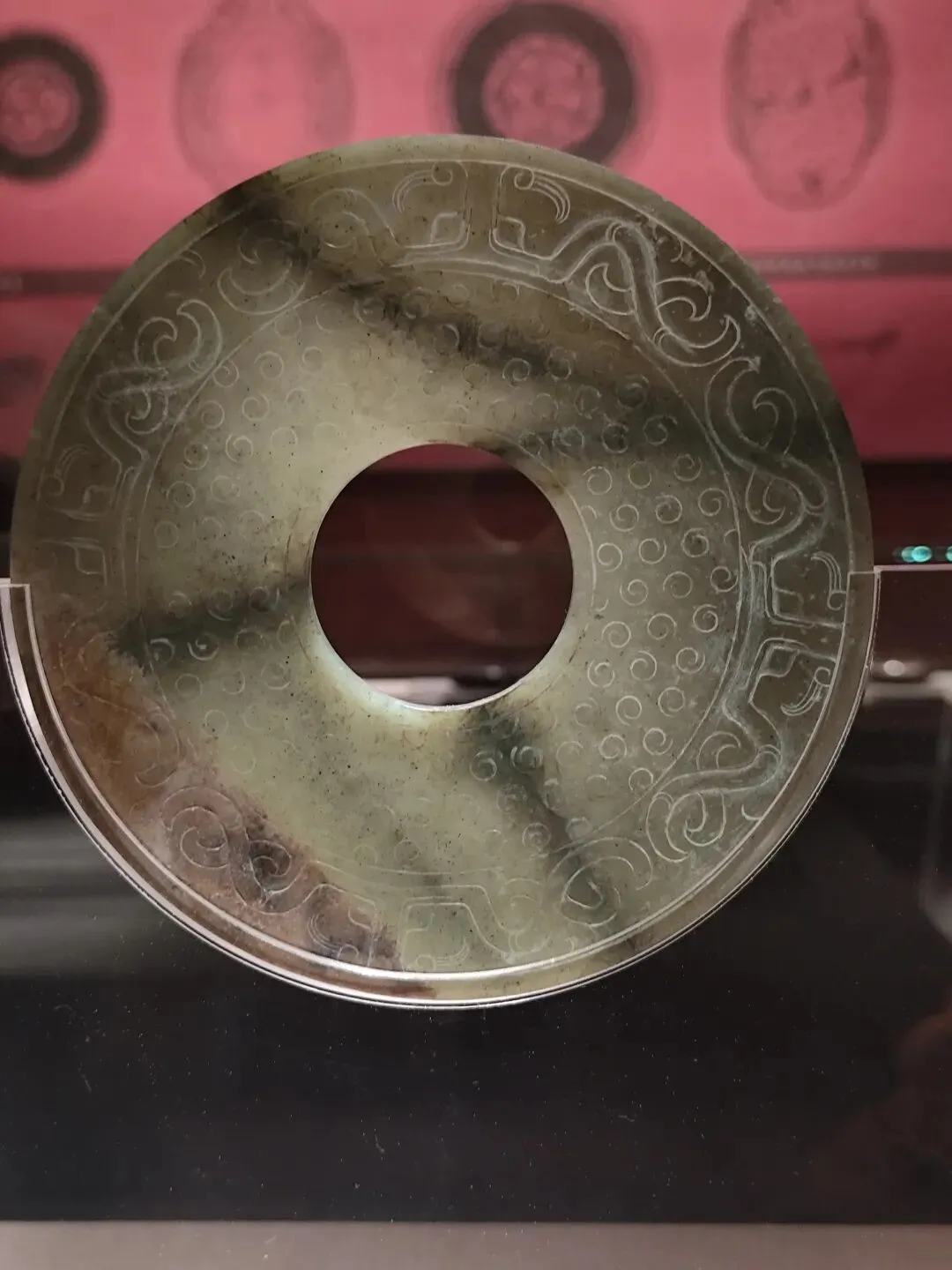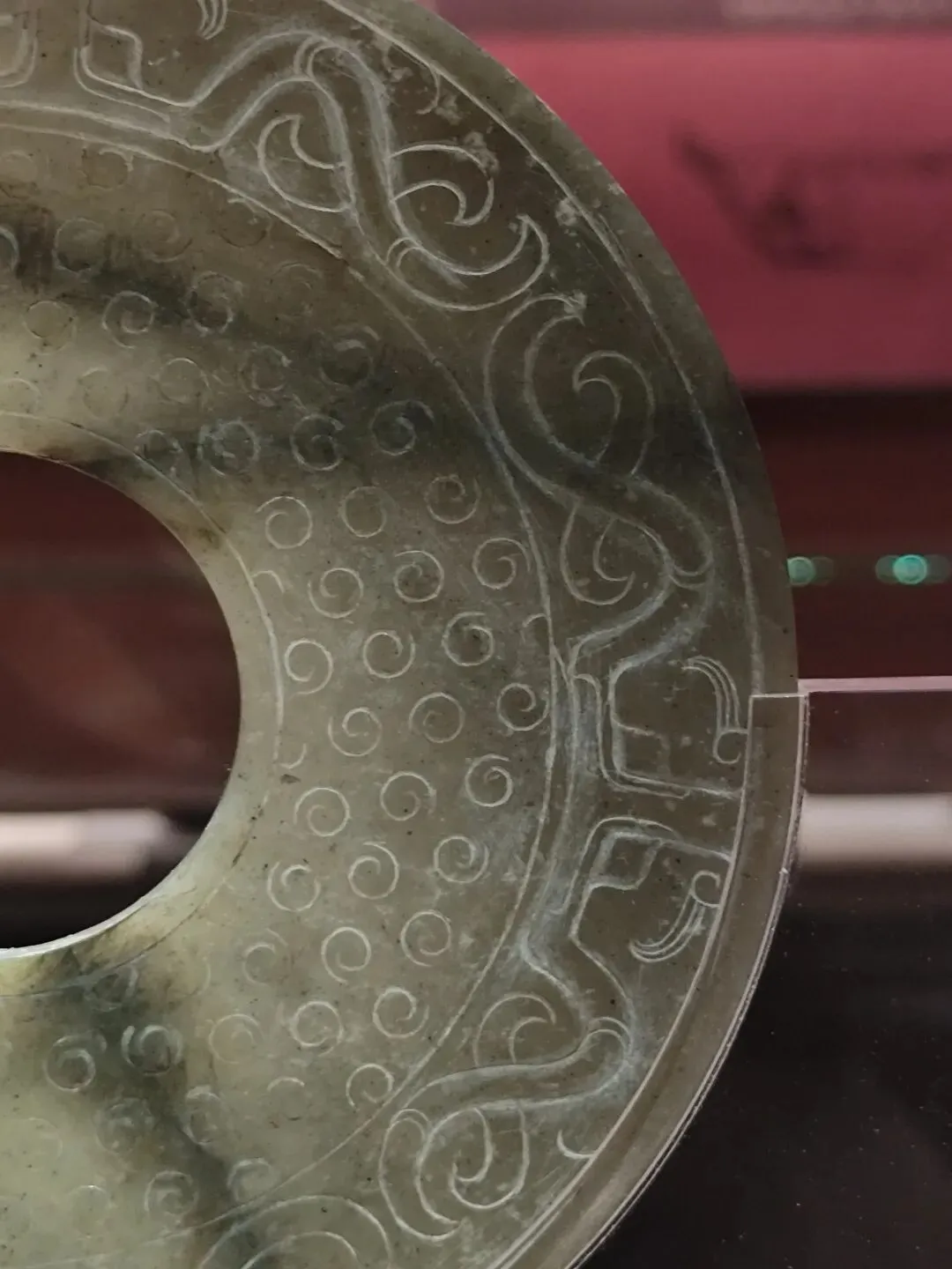 - 玉璧边缘打磨圆润,钻孔工艺精准,体现汉代治玉“减地阳刻+线刻”的成熟技法。