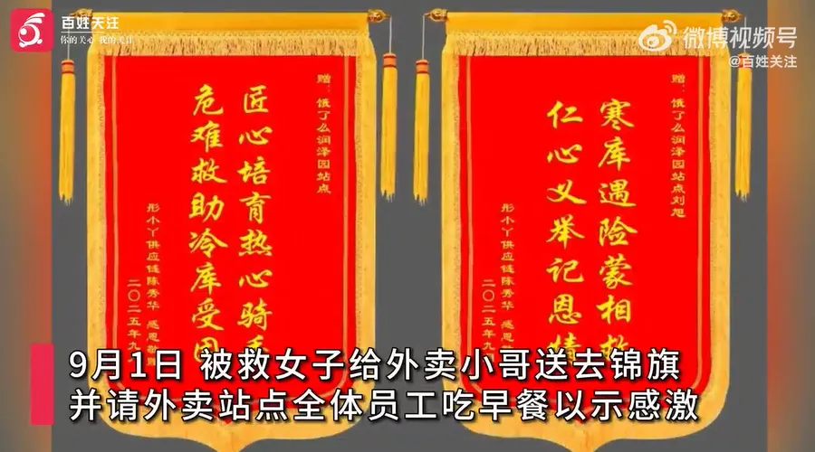 9月1日,获救女子特意送锦旗,并请站点员工吃早餐表达感谢。