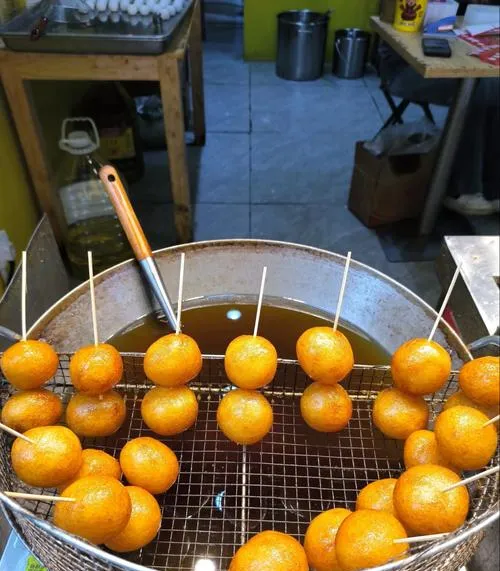 糖油粑粑这个东西,冷了就不行了,真的。我试过打包带回酒店,等凉了再吃,完全是两个东西,外面那层糖浆一凉就硬了,里面的糯米团也不软了,咬一口就知道不对劲。所以长沙人都是买了就站在摊位旁边吃,烫嘴也要吃,就要那个刚出锅的状态,外面滚烫的糖浆和里面还有点烫手的糯米团,一口咬下去,那种感觉,怎么说呢,就是甜和烫同时在嘴里爆发,然后糯米的香气和糖的焦香混在一起,这个体验冷了就没了。
