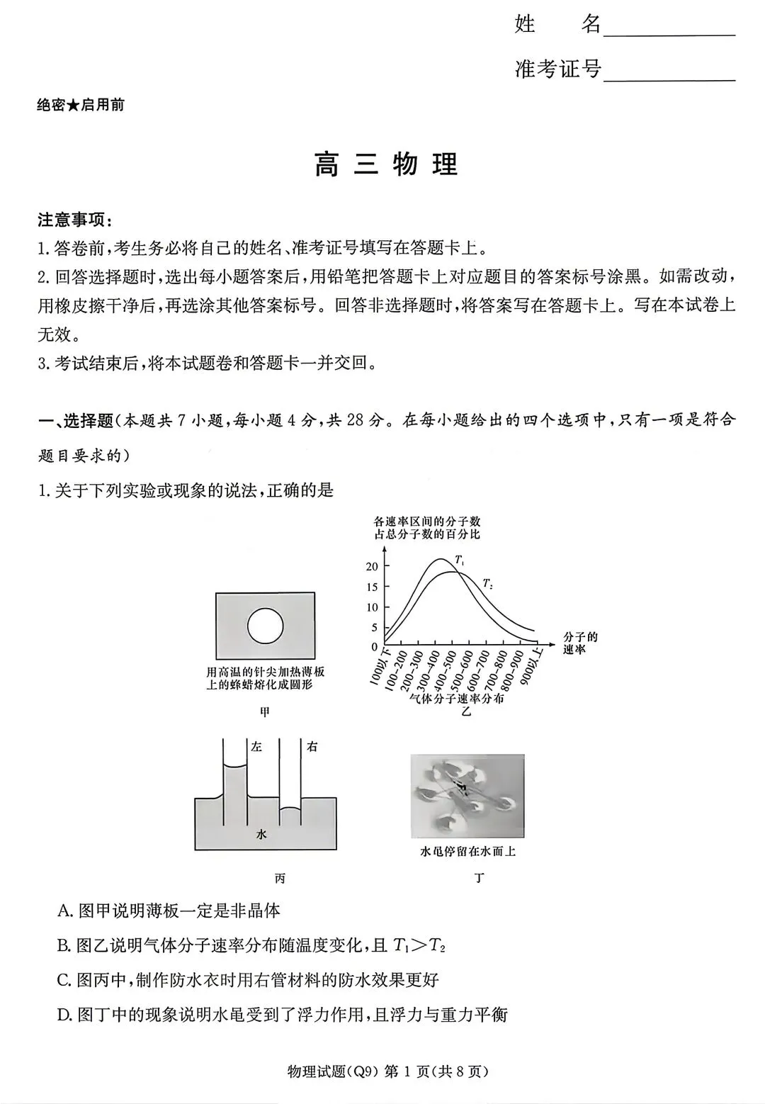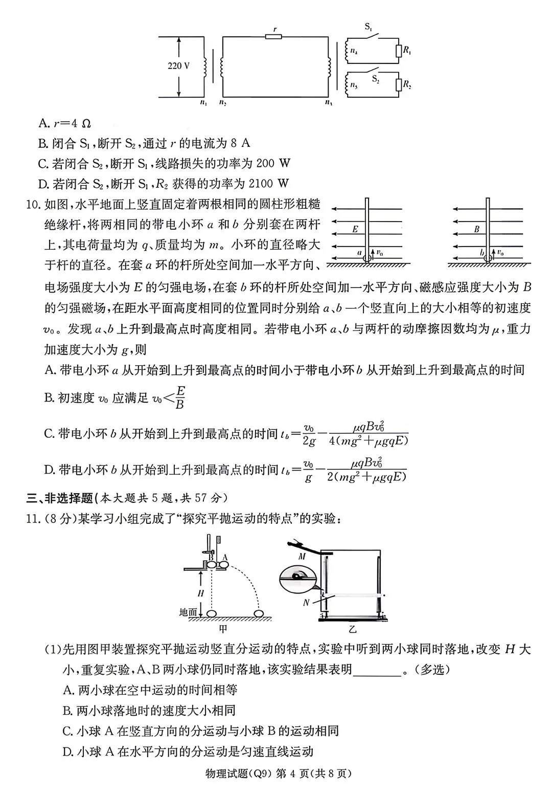湖南长沙一中2026届高三下学期第九次月考物理.pdf
