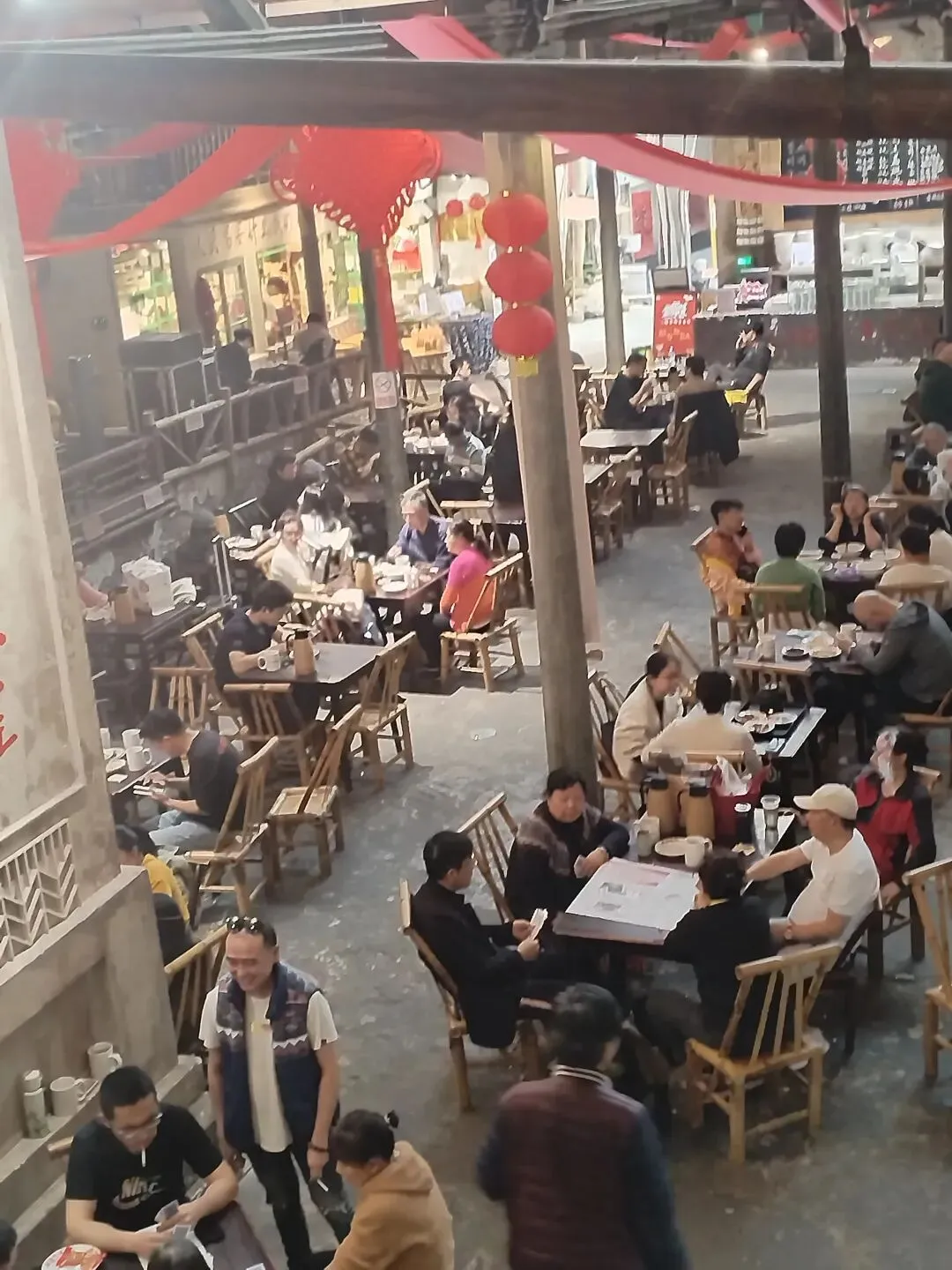 大概是因为这里的闹,是老街坊间那种熟悉的闹,像小时候外婆家的堂屋,人再多也不觉得吵。外面是车水马龙的解放路,里面是茶香、糖油香和纸牌翻动的声音混在一起,时间好像慢了下来。