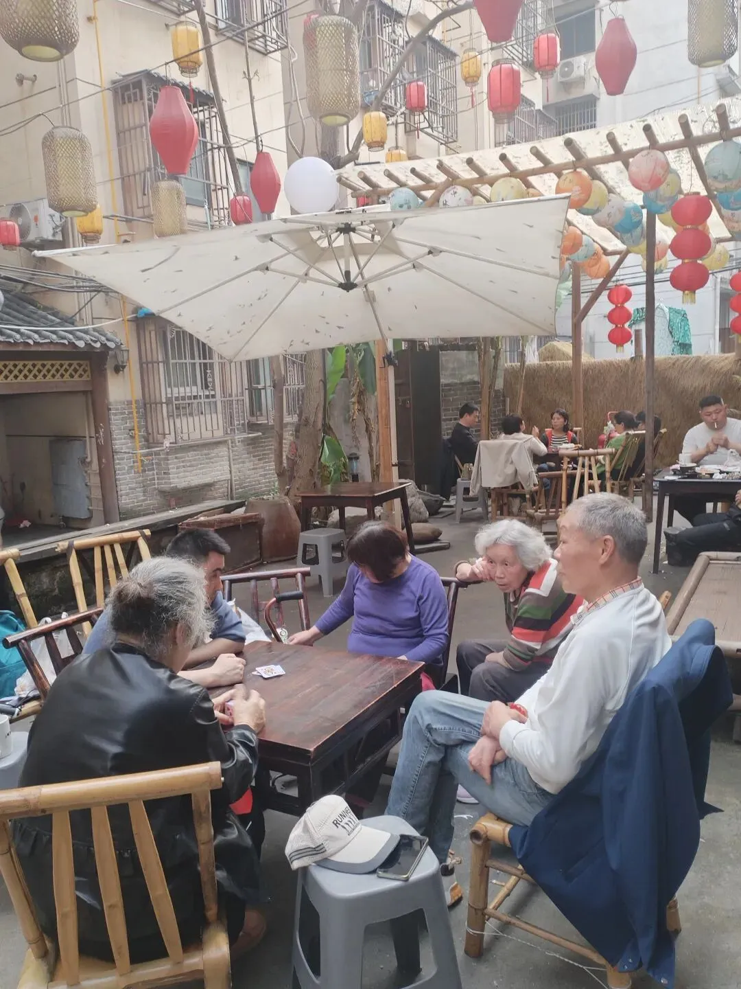 有人端着碗吃得满头大汗,有人捧着茶杯慢慢品,更多的人围在一起打扑克。“出对子!”“压住!”声音此起彼伏,热闹得很。可说来也怪,这热闹里头,偏有一种说不出的安静。