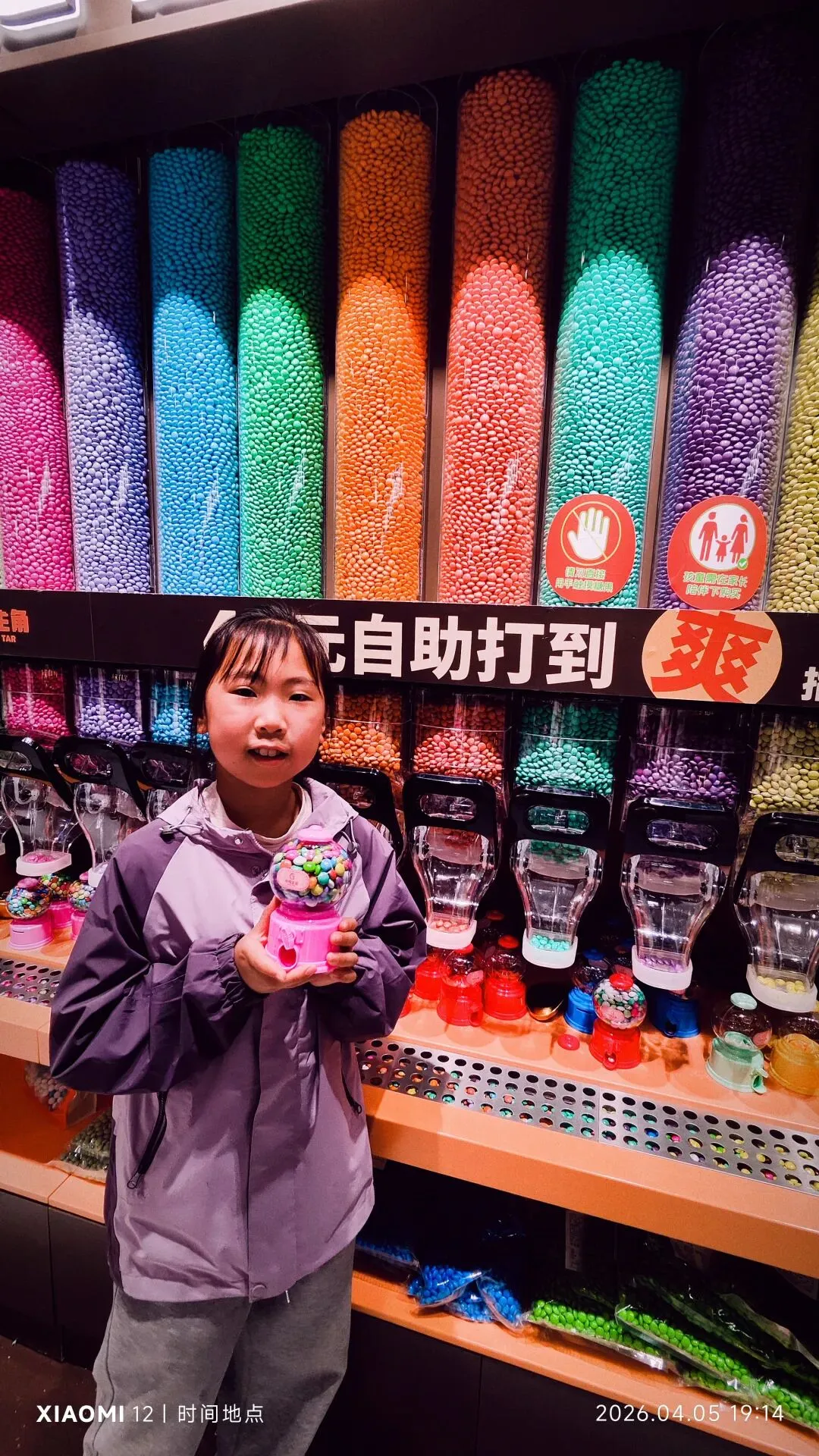 继续往前走,一家巧克力博物馆让小女欢喜雀跃。巧克力是小女从小到现在都喜爱的零食。脚一迈进博物馆,一股巧克力的香味扑来,我闻香而寻,发现两边的展示品下那些作为铺饰品的一小块一小块方砖型的巧克力,是真的巧克力。香味就是它们发散出来的。我惊喜的要告知女儿。没想到女儿却先惊喜的告诉我:这些大件展示品是用真的巧克力制作的,标签上写了,还写了价格……我一看:天哪,都是万元以上。这个博物馆就这样随随便便把它们摆在进门处,虽然标签上写了不能触摸。接着拐上2楼,我就知道这不是什么公益博物馆,而是商店。因为买卖的气息马上盖过了巧克力的香味。即使,在二楼的口子上的敞开的展示区内,有一只巨大的巧克力龙虾也没能散发出盖过买卖气息的巧克力香味。小女最后选择自己打一瓶48元的巧克力豆。一罐一罐分不同颜色排列的巧克力豆对孩子挺有吸引力。很多孩子都选择购买此类产品。我混迹其中,尝了个够。