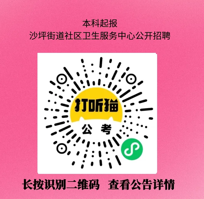 【长沙招聘】本科起报!沙坪街道社区卫生服务中心公开招聘!