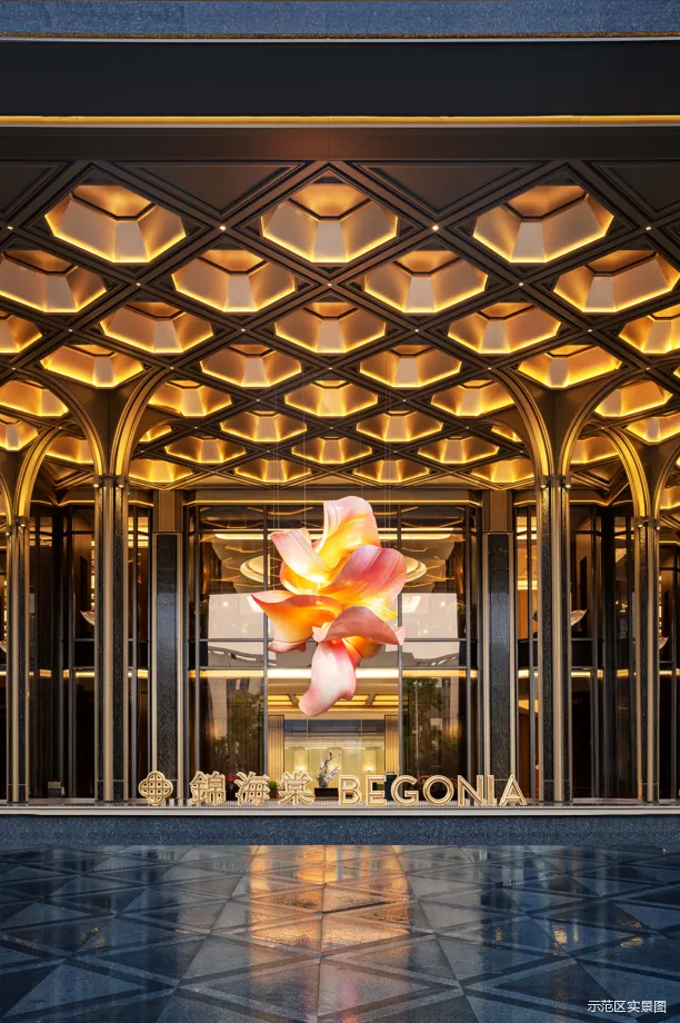 高约9.5米、宽55米的宏伟门庭,华贵大气