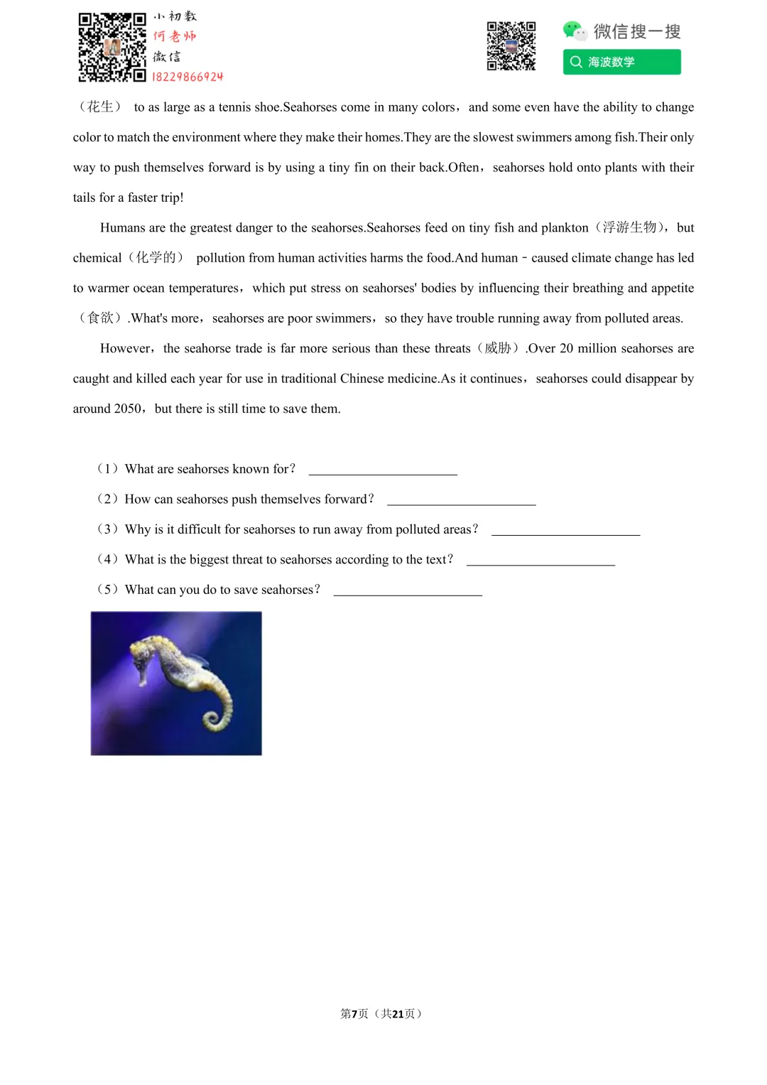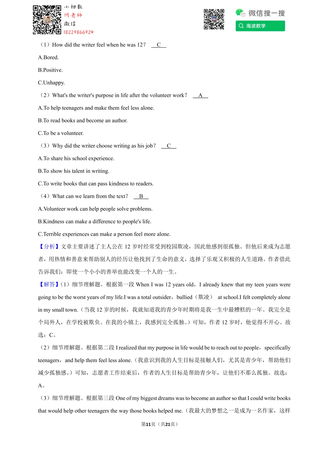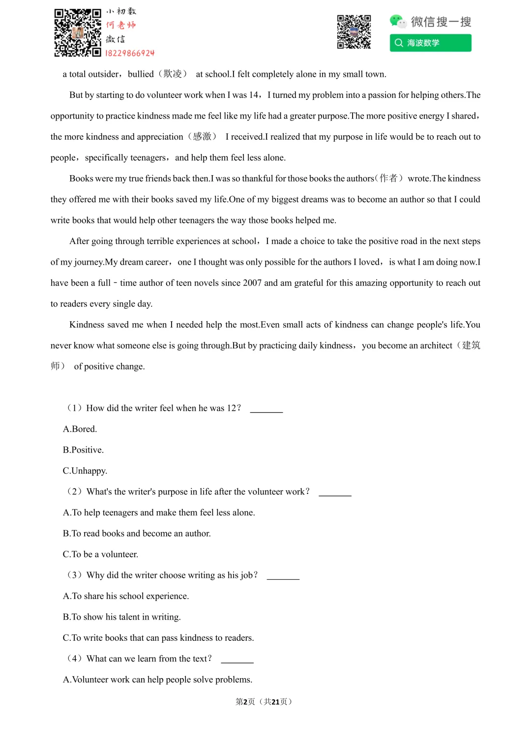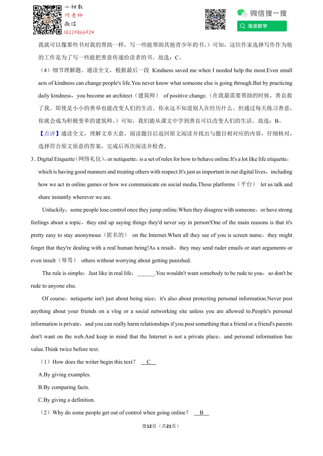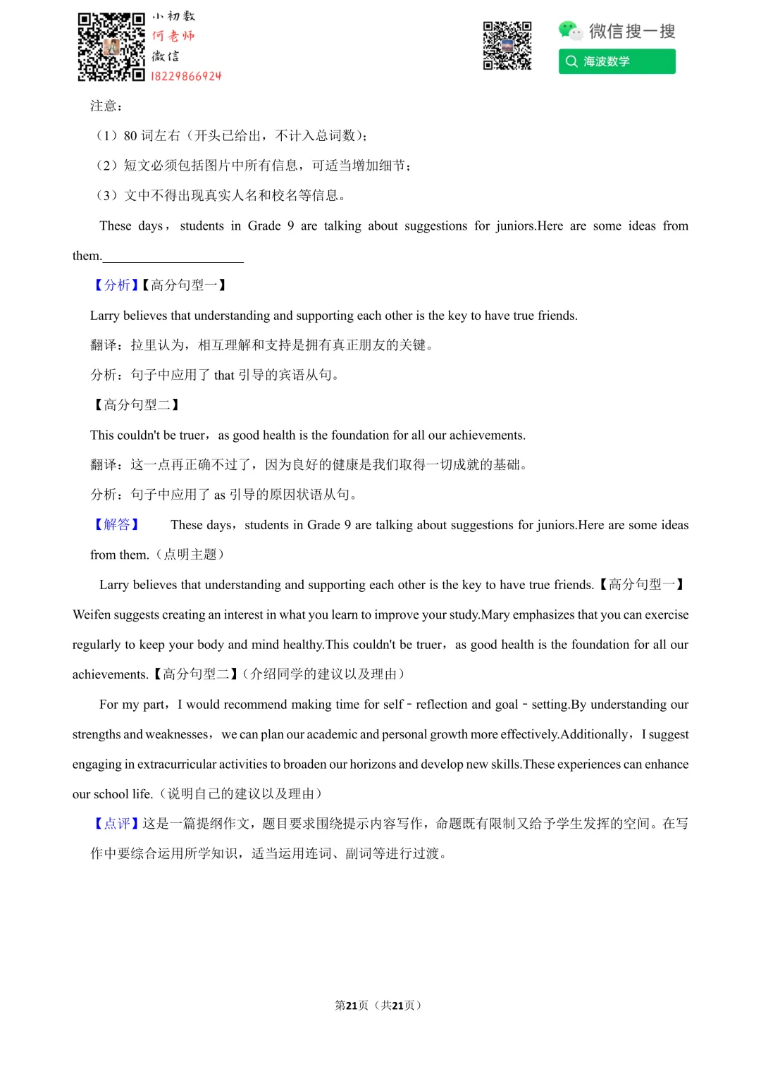 ①扫码添加何老师微信进对应年级资料分享微信群