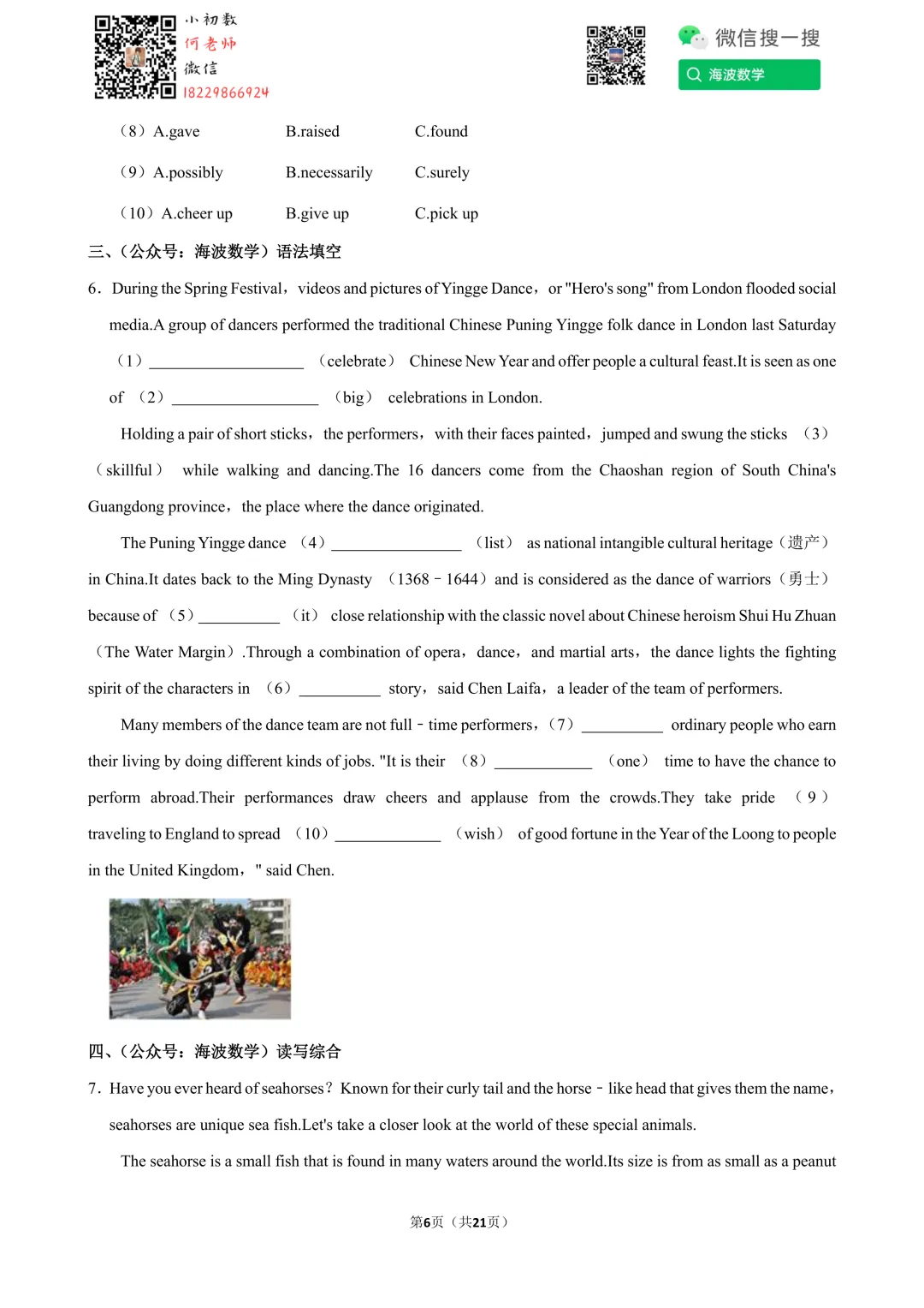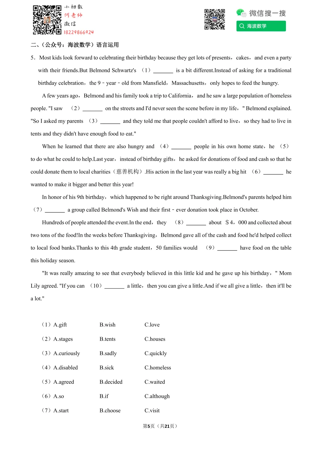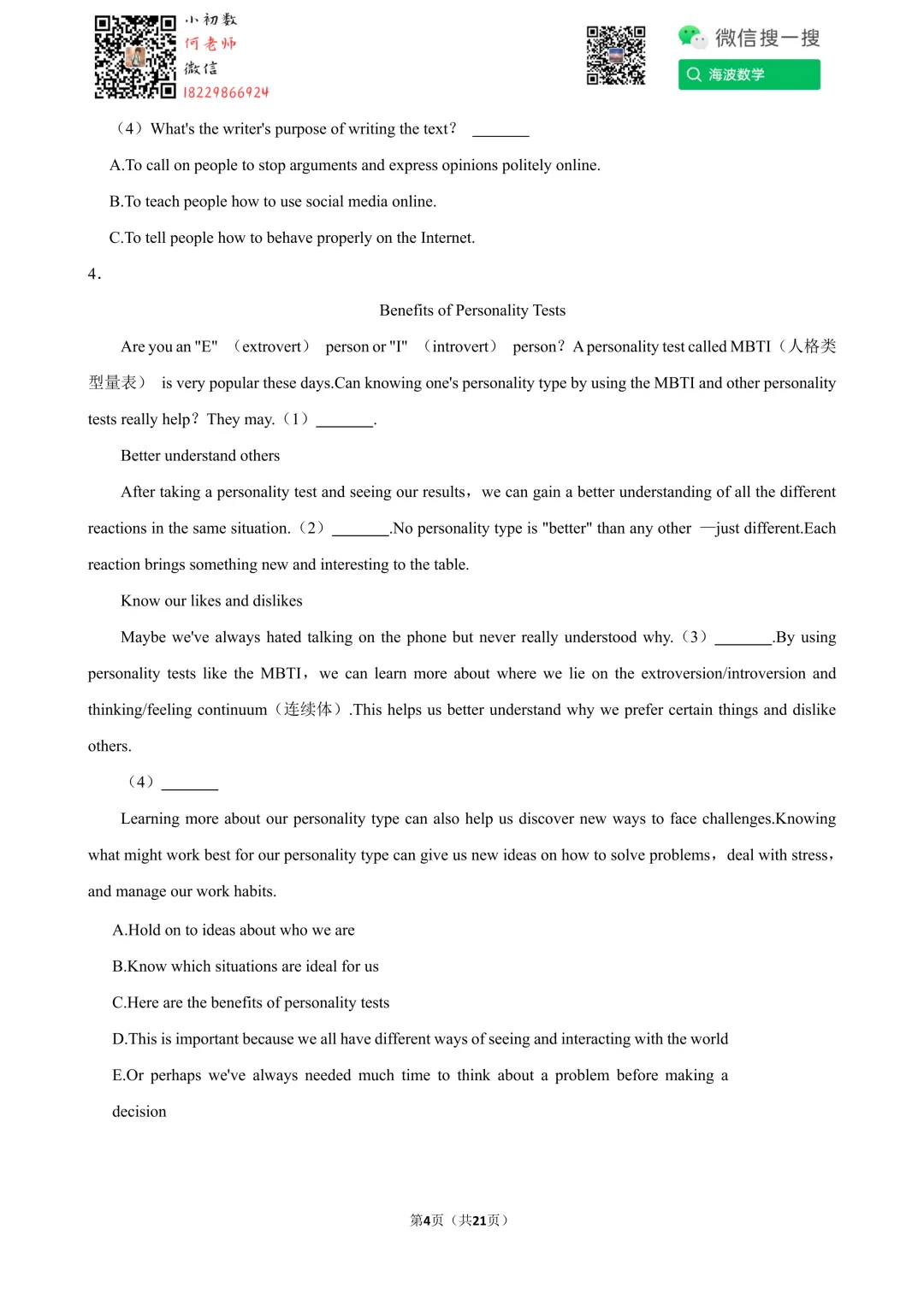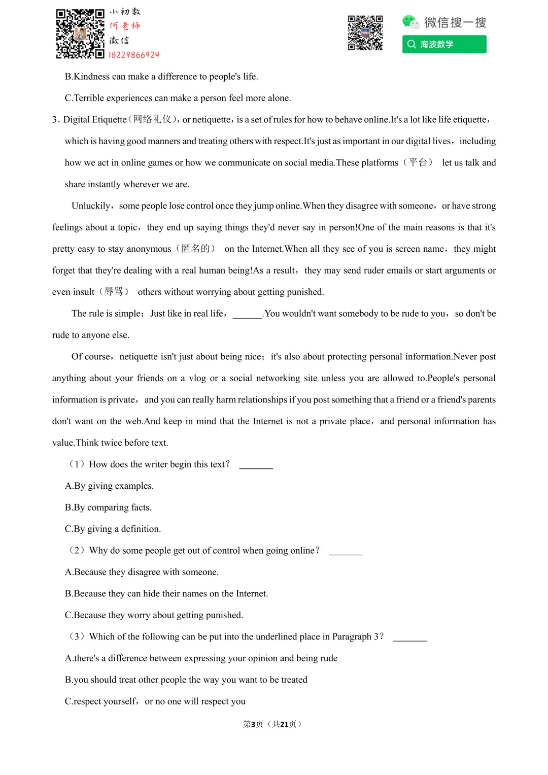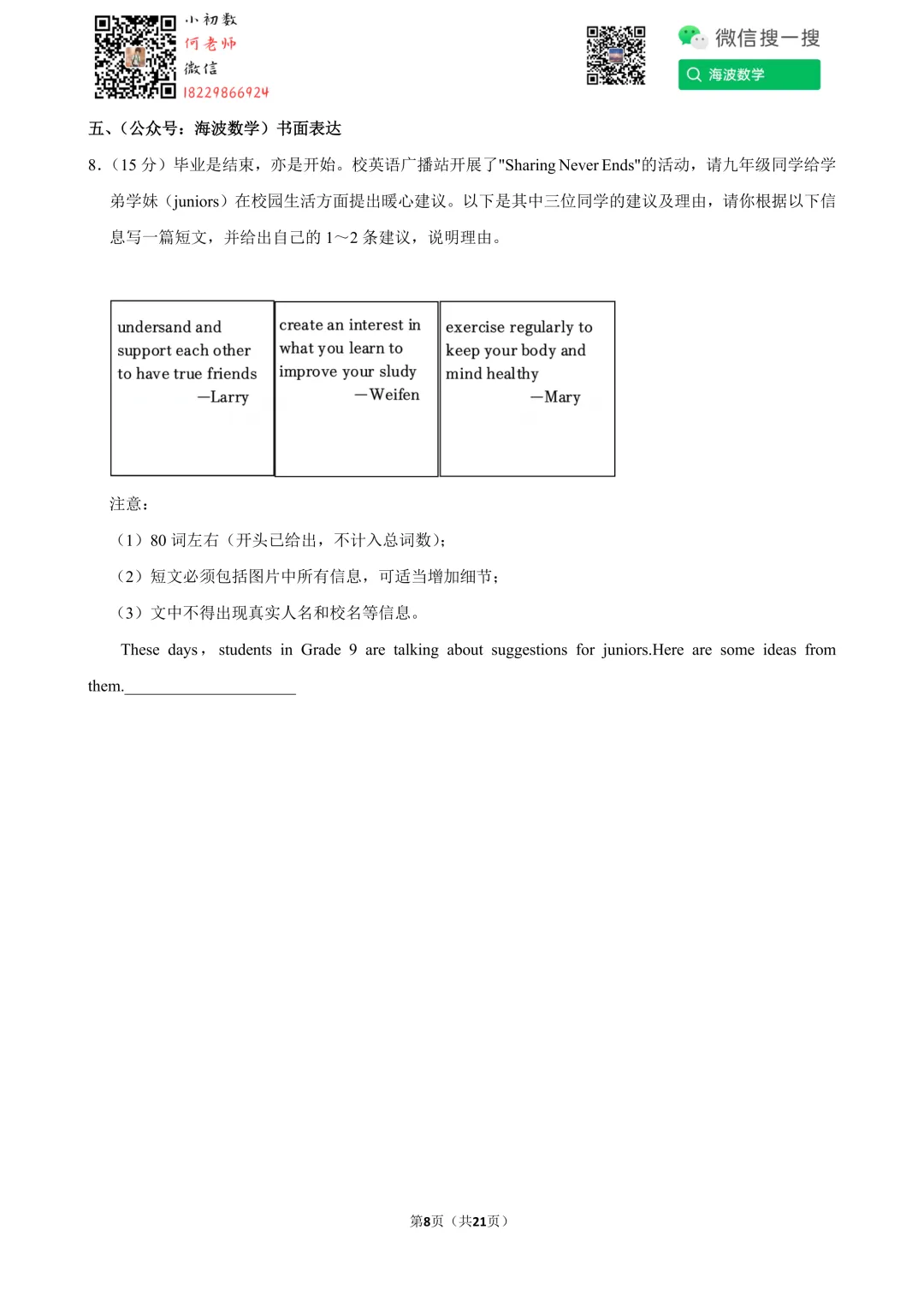 ①扫码添加何老师微信进对应年级资料分享微信群