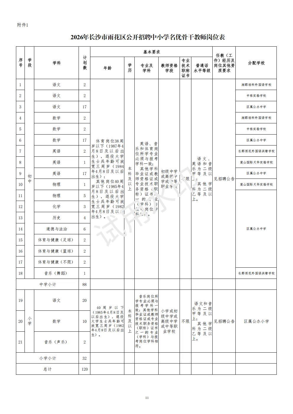 1.2026年长沙市雨花区公开招聘中小学名优骨干教师岗位表