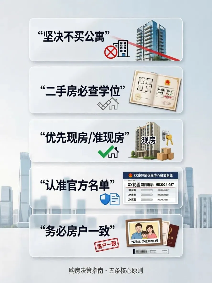 1.🚫 坚决不买公寓:商业公寓无入学资格,销售承诺全无效,只买70年住宅