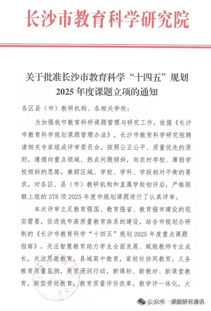 关于批准长沙市教育科学“十四五”规划2025年度课题立项的通知.pdf