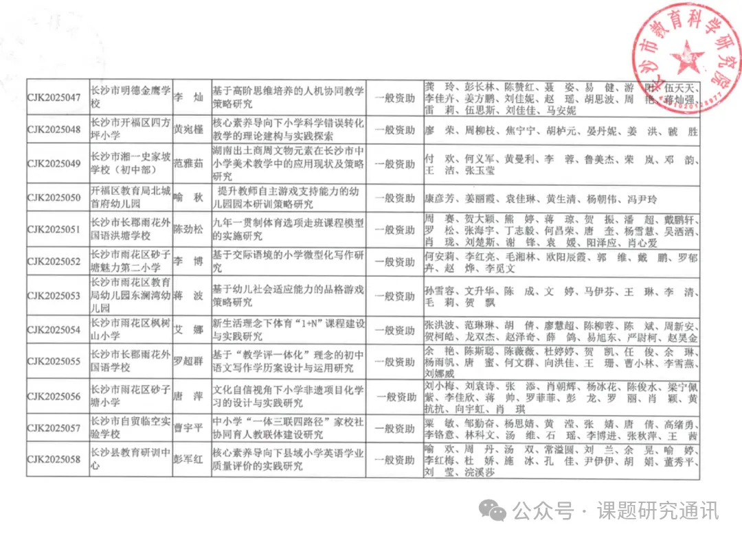 为加强我市教育科研课题管理与研究工作,依据《长沙市教育科学规划课题管理办法》,长沙市教育科学研究院聘请相关专家组成评审委员会,按照公正公平、质量优先的原则,遵循向重点领域、热点问题倾斜,向农村学校、薄弱学校倾斜的思路,兼顾区域、学校、学科、学段相对平衡的要求,对各区、县(市)教研机构和直属学校初评后,严格限额上报的378项2025年度市规划课题进行了认真评审。