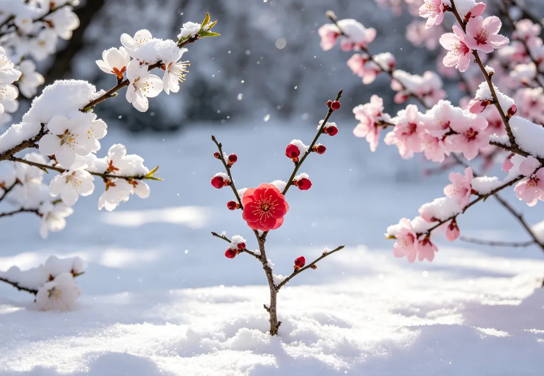颇怪梅花不肯开,岂知有意待春来。灯前玉面披香出,雪后春容取胜回。