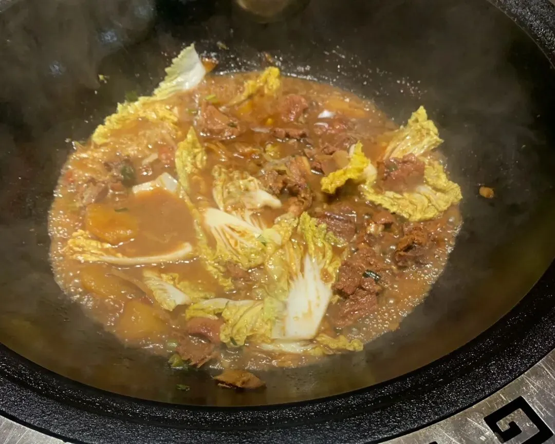 往里面下蔬菜,还有里面的土豆,吸满了浓郁的汤汁,味道很不错。