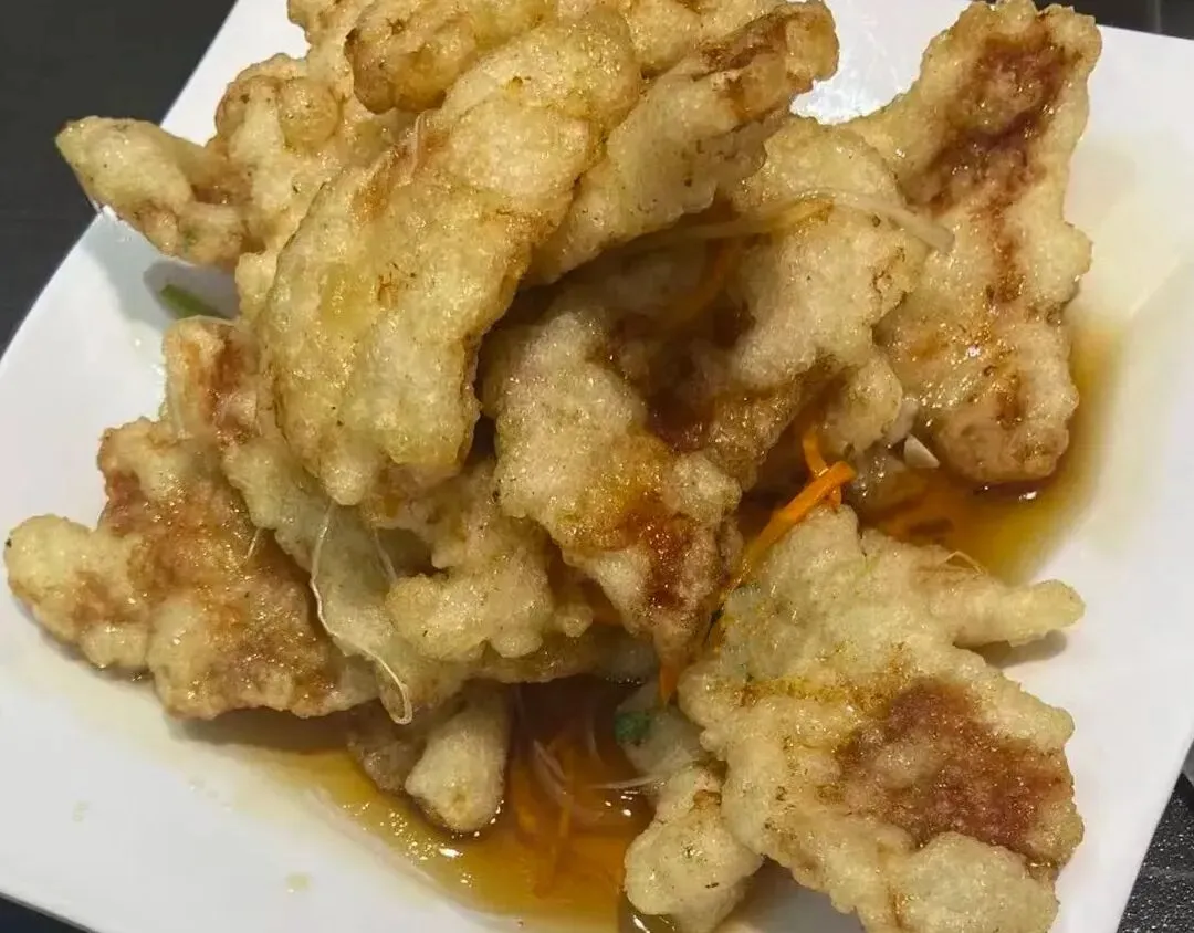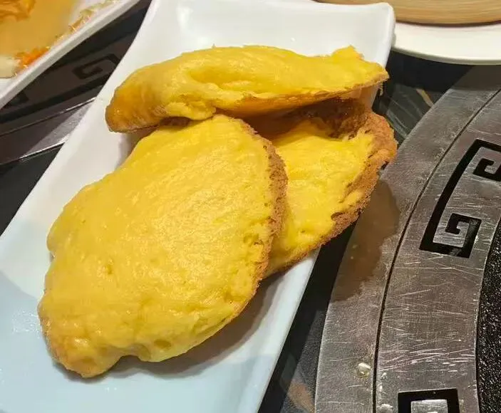 锅边的贴饼子,底部糟脆,其他部分香软,口感也好。