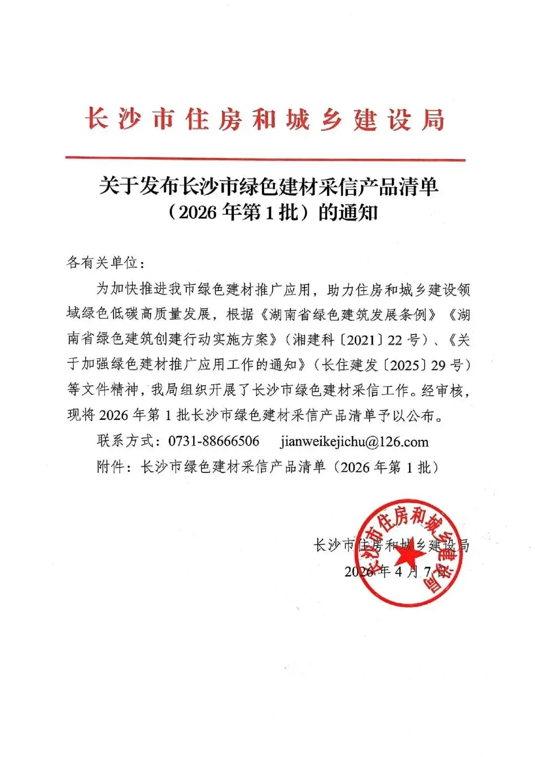 附件:长沙市绿色建材采信产品清单2026年第1批.docx