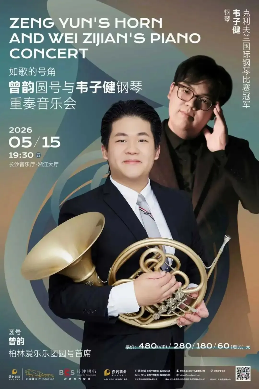 首次来到长沙,曾韵将用圆号重新演绎“柴五”第二乐章“如歌的行板”,甚至挑战二胡名曲《赛马》!