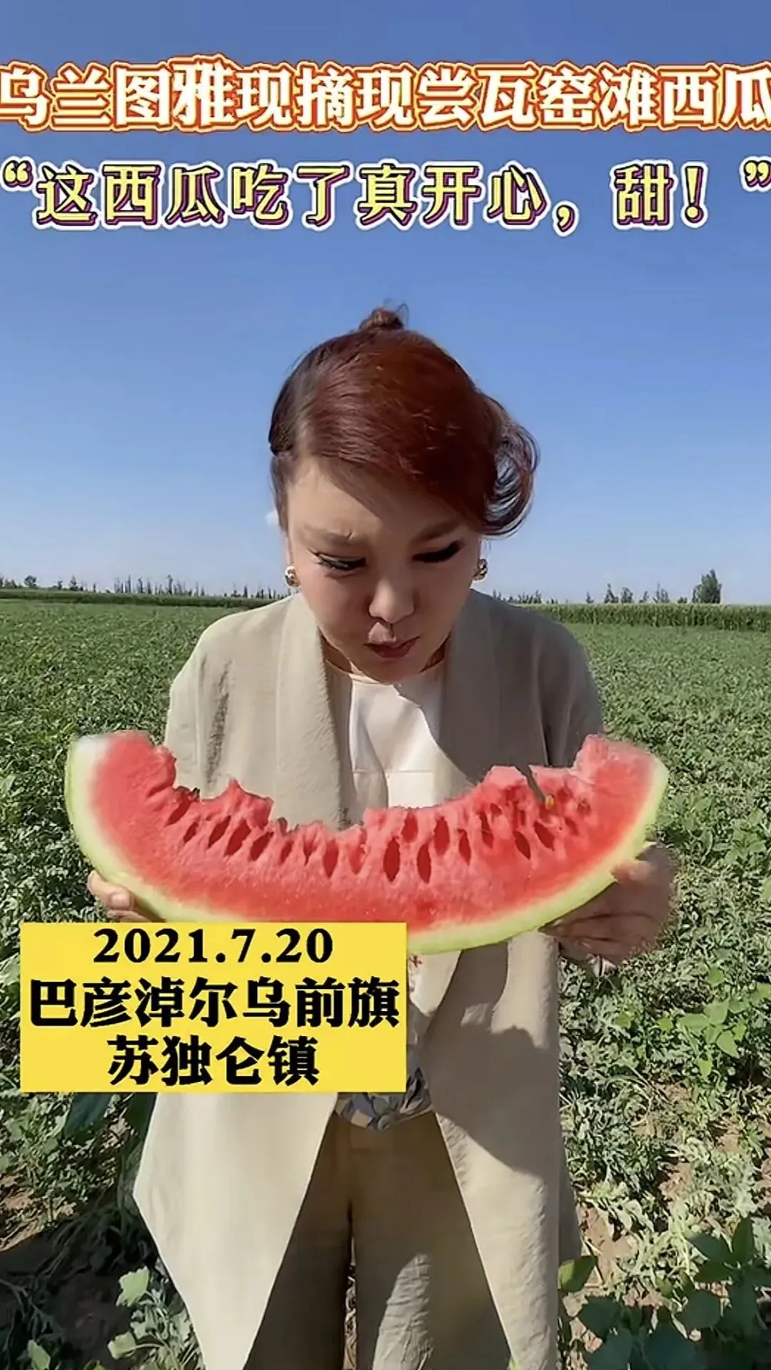 2021年,她走进巴彦淖尔乌拉特前旗的瓜田里,和瓜农们一起摘瓜、吃瓜、宣传瓜。