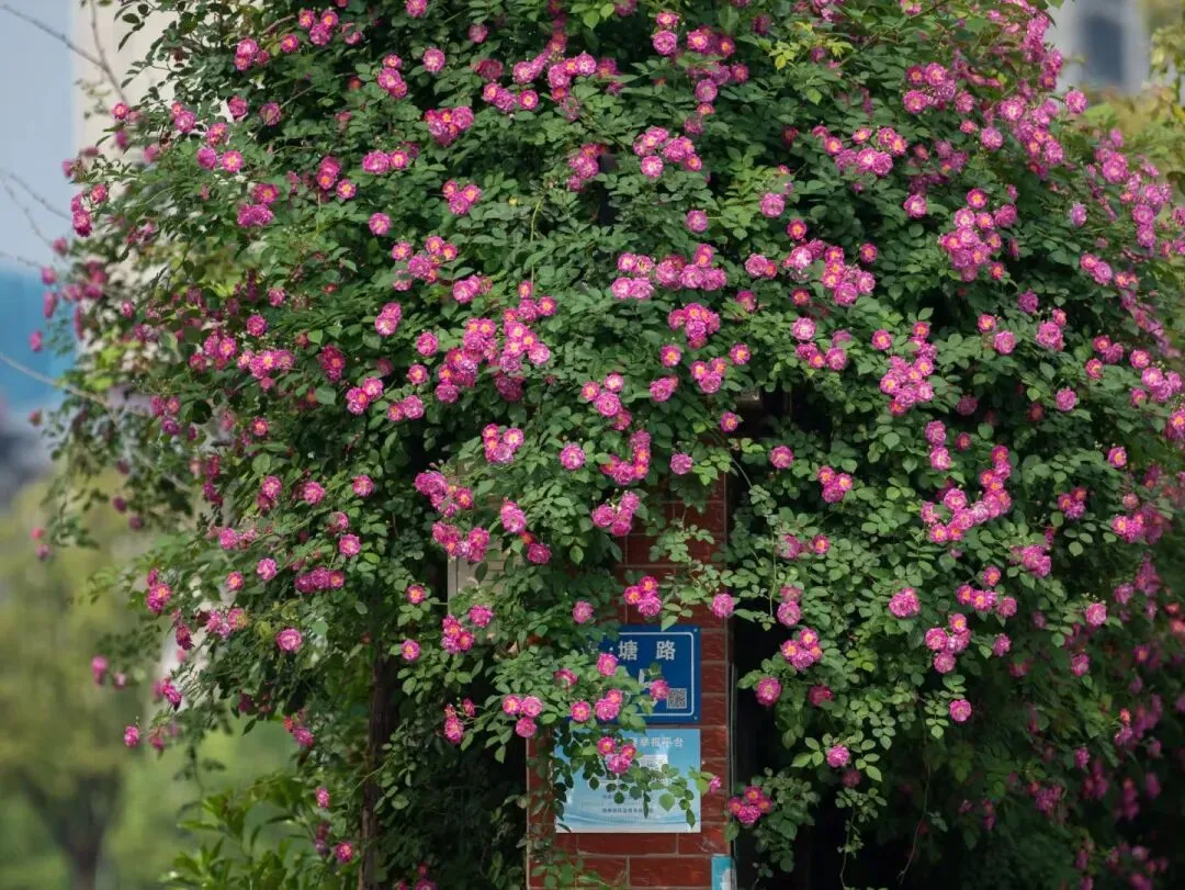 1.麓山南路(湖南大学研究院门口):骑车路过就能看到,蔷薇探出墙头,裹着淡淡的花香,氛围感拉满。